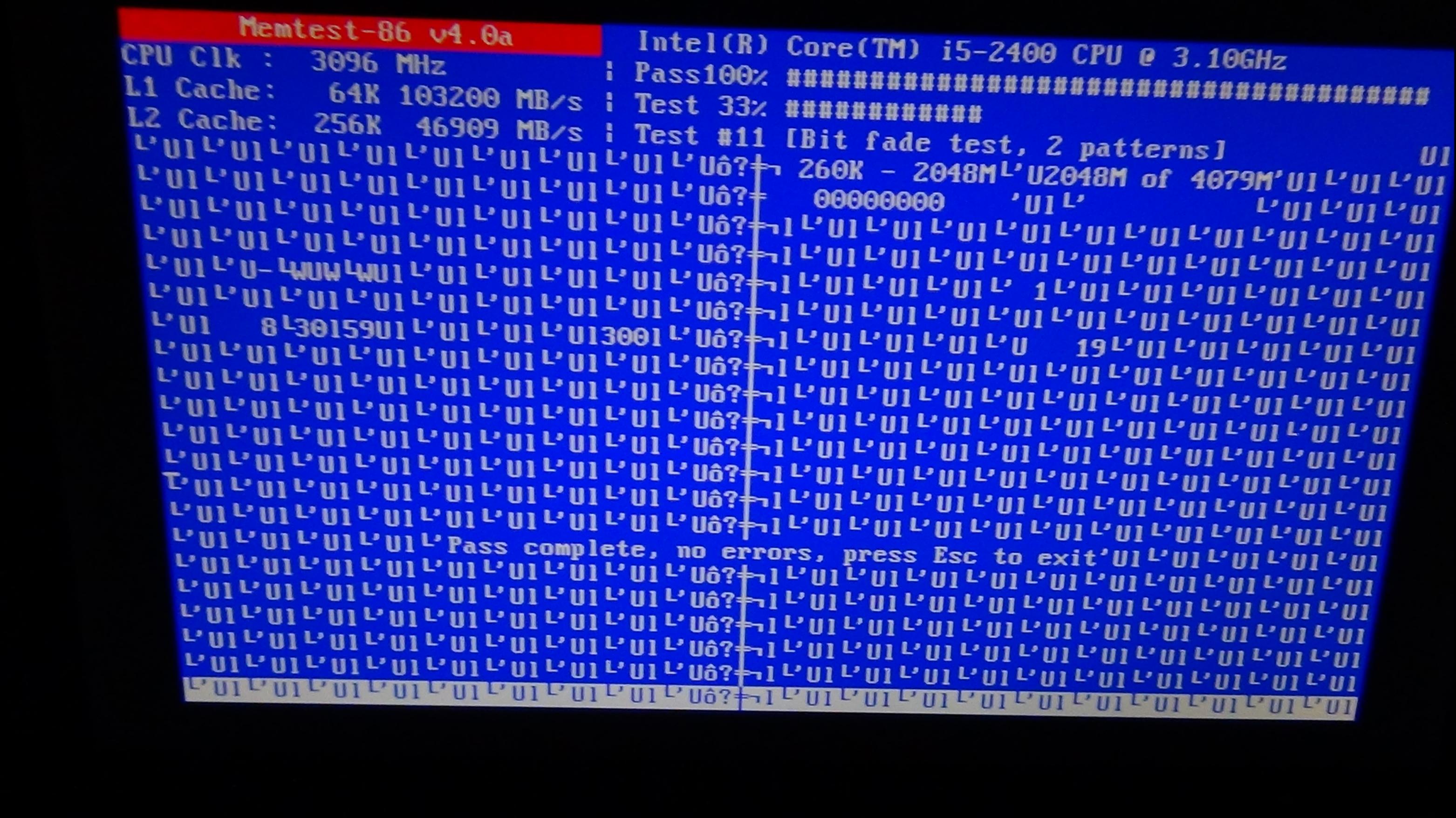 Memtest habe ich gestern Abend/Nacht ausgeführt: Nach ~2 Stunden wurde kein Problem gefunden, am Ende der Nacht sah das Ganze so aus wie beim dritten Anhang.