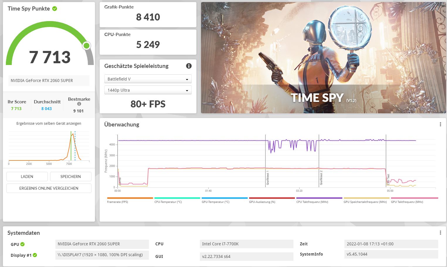 Ich habe eine RTX 2060 Super als DEFEKT für meinen Mini-ITX Netzwerk Rechner erworben, da ich gem. Beschreibung vom Verkäufer sicher bin, dass es sich um ein kleineres Problem handelt. Gem. Verkäufer funktioniert die Karte bei Warzone ohne Probleme, stürzt aber bei Halo oder FIFA22 ab. Die Karte habe ich gestern abgeholt und diverse Benchmarks mit 3D Mark laufen lassen. Diese haben auch alle funktioniert (TimeSpy und TimeSpy Extreme) und die Karte bewegte sich bei ca. 70°. Zudem war der Boost konstant bei ca. 1.470 MHz gem. Angabe Hersteller demnach korrekt (siehe hierzu Bilder Benchmark 3D Mark).