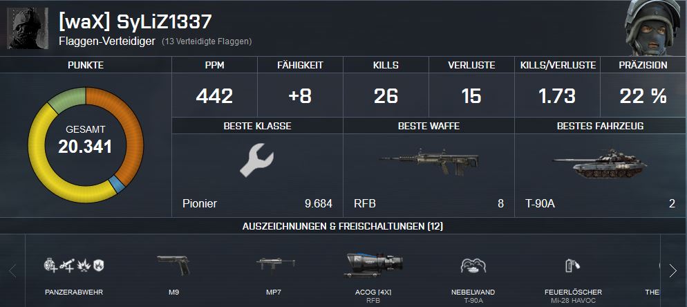 Meine Statistiken sind eher miserabel, eine K/D von 0,72 und auch fast alle Runden verloren.
