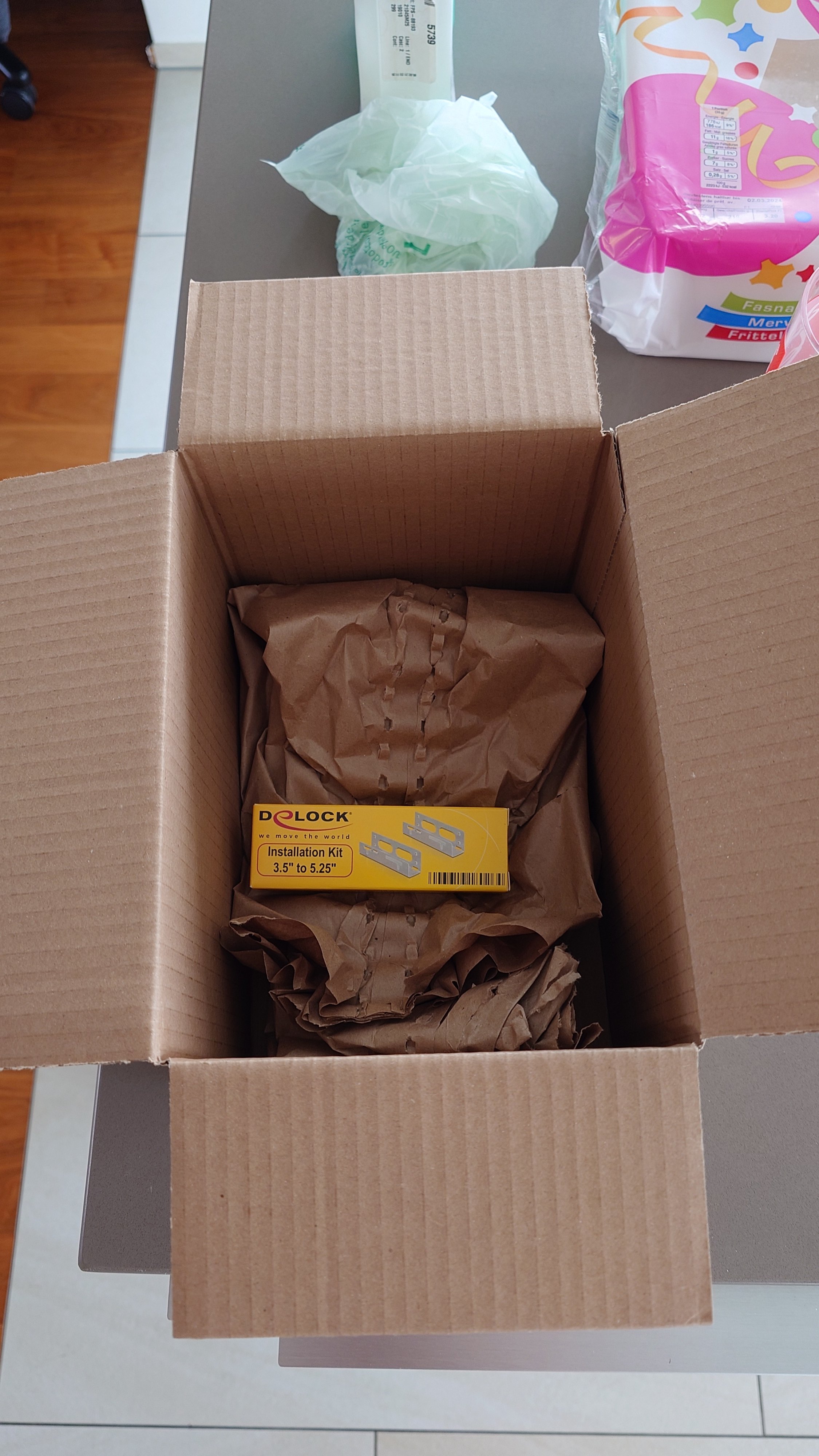 Danke dem 5.25" zu 3.5" adapter (ja der kam wirklich so an!) passen 4x 3.5" HDDs in das Gehäuse.