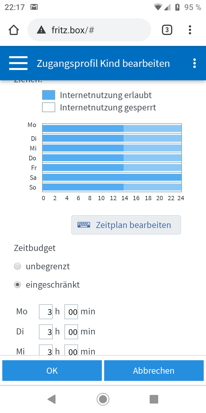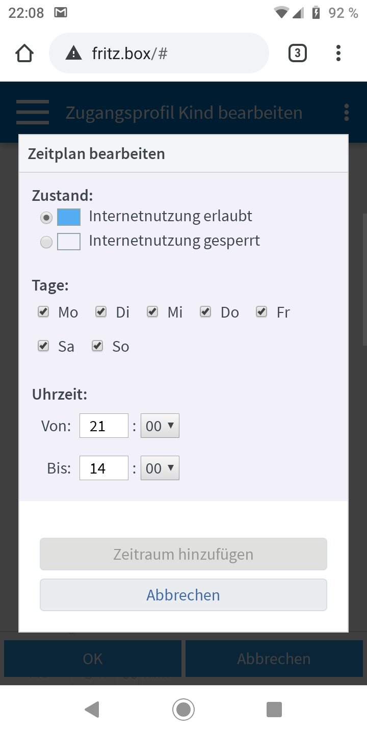 Hallo da mein Sohn des öfteren länger Mal Netflix oder YouTube schaut, nach 21Uhr(Ist 9Jahre). Und dann meint nicht aus den Federn zu kommen, wenn er Schule hat, habe ich beschlossen das er ab einer bestimmten Zeit kein Internet Zugang hat. Also möchte zum Beispiel das um 21Uhr das Internet gesperrt ist. Allerdings funktioniert das nicht so wie ich es möchte da er mit meiner Einstellung trotzdem noch Online sein kann. Wir haben eine Fritzbox und da gibt es ja so ein Bereich für eine Kindersicherung die man einen PC zuweisen kann.
