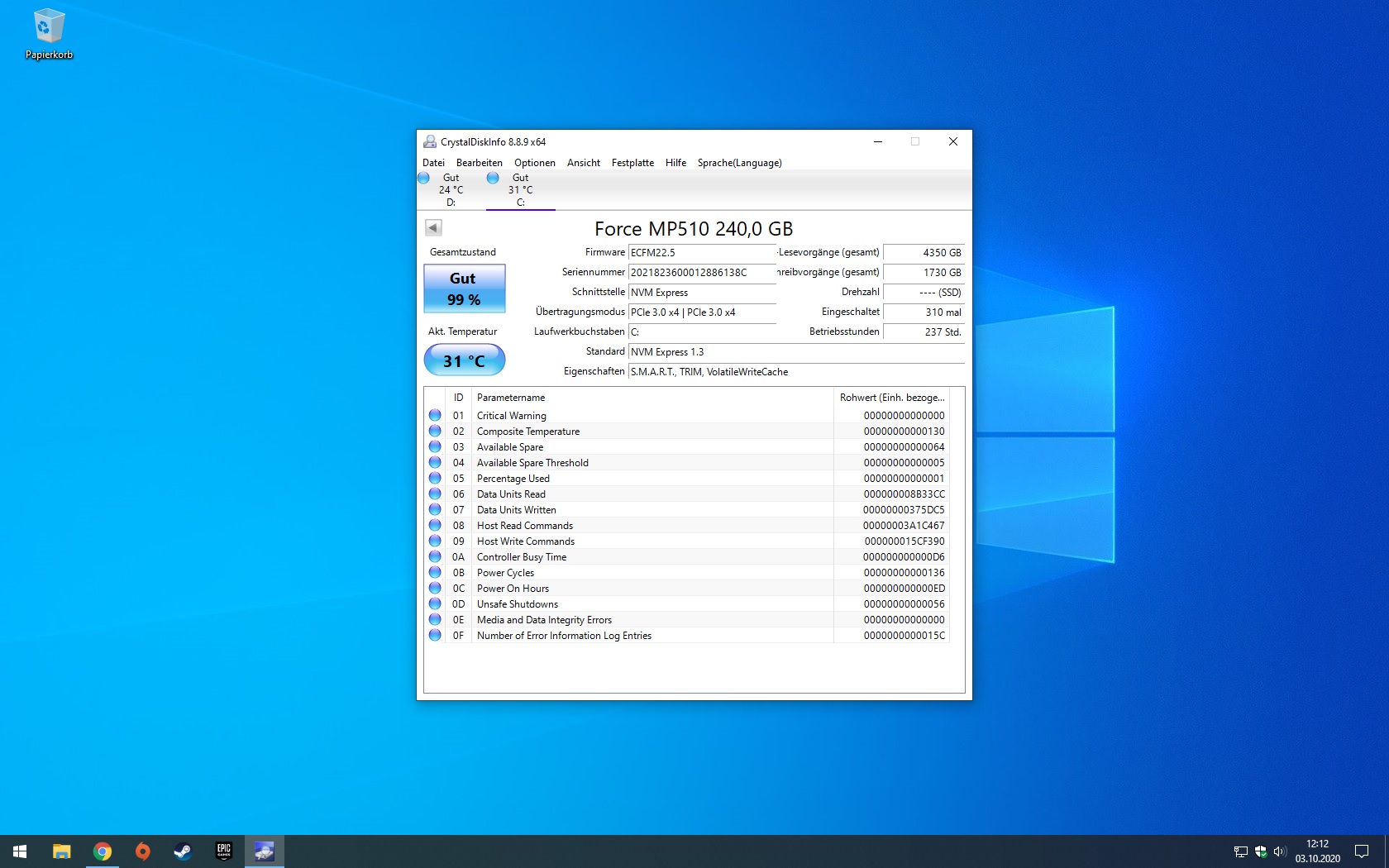 MP510 240GB M.2 (hier ist fortnite + Windows)