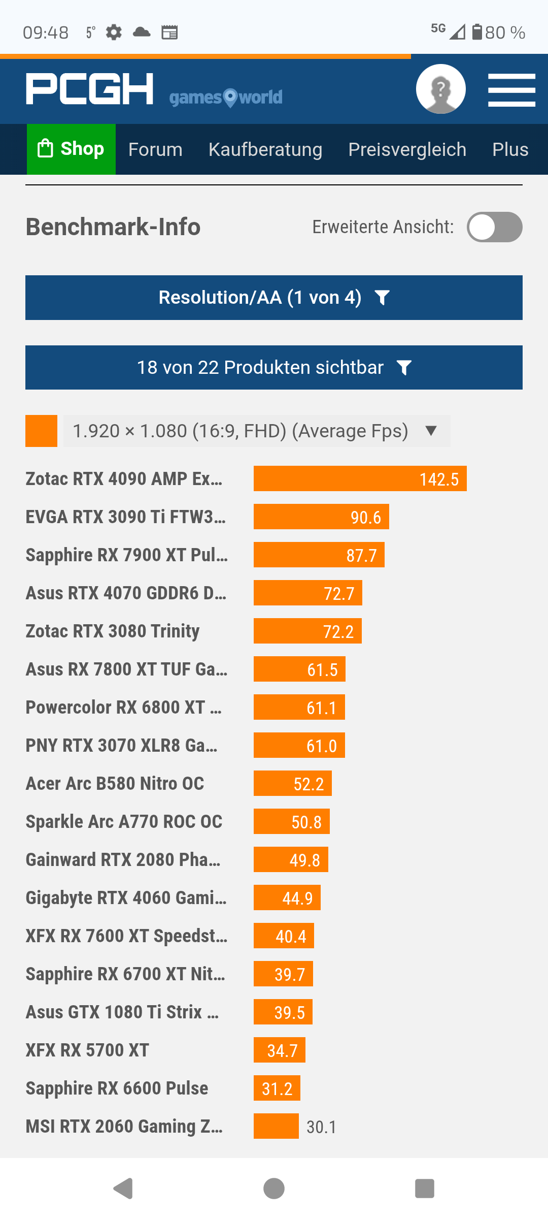 In der immer noch meist-gespielten Auflösung, Full-HD (also abseits des CB Test-Sparparcours), liegt man mit einer RX 6800XT sowieso komfortabel auch in Ultra-Einstellungen mit FSR über 60fps (selbst ohne Upsampling noch knapp darüber).