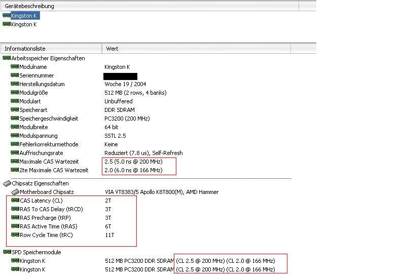 Des weiteren wird mir in CPU-Z und in Everest angezeigt "CL2.5 @200MHz", "CL2.0 @166MHz".