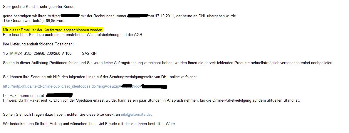 reklamation@alternate.de, Fax an: +49 (0) 18 05 - 90 50 20**.