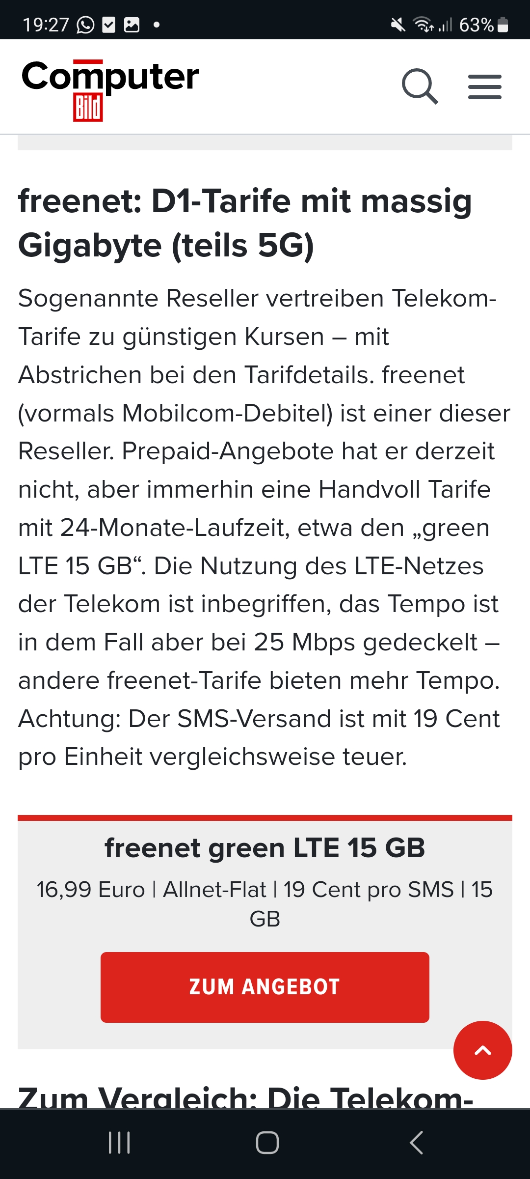 Ne ich bräuchte einen und hab in google eingeben, congstar alternative und bei Computerbild wurde mir der vorgeschlagen, ist aber von 10 Euro auf 16.99 gestiegen.cartridge_case schrieb:Nein, danke.Klarmobil war erst so nett, mir meinen Vertrag geändert mit 12GB für 5,99€ zu verlängern. Darüber bin ich sehr happy.