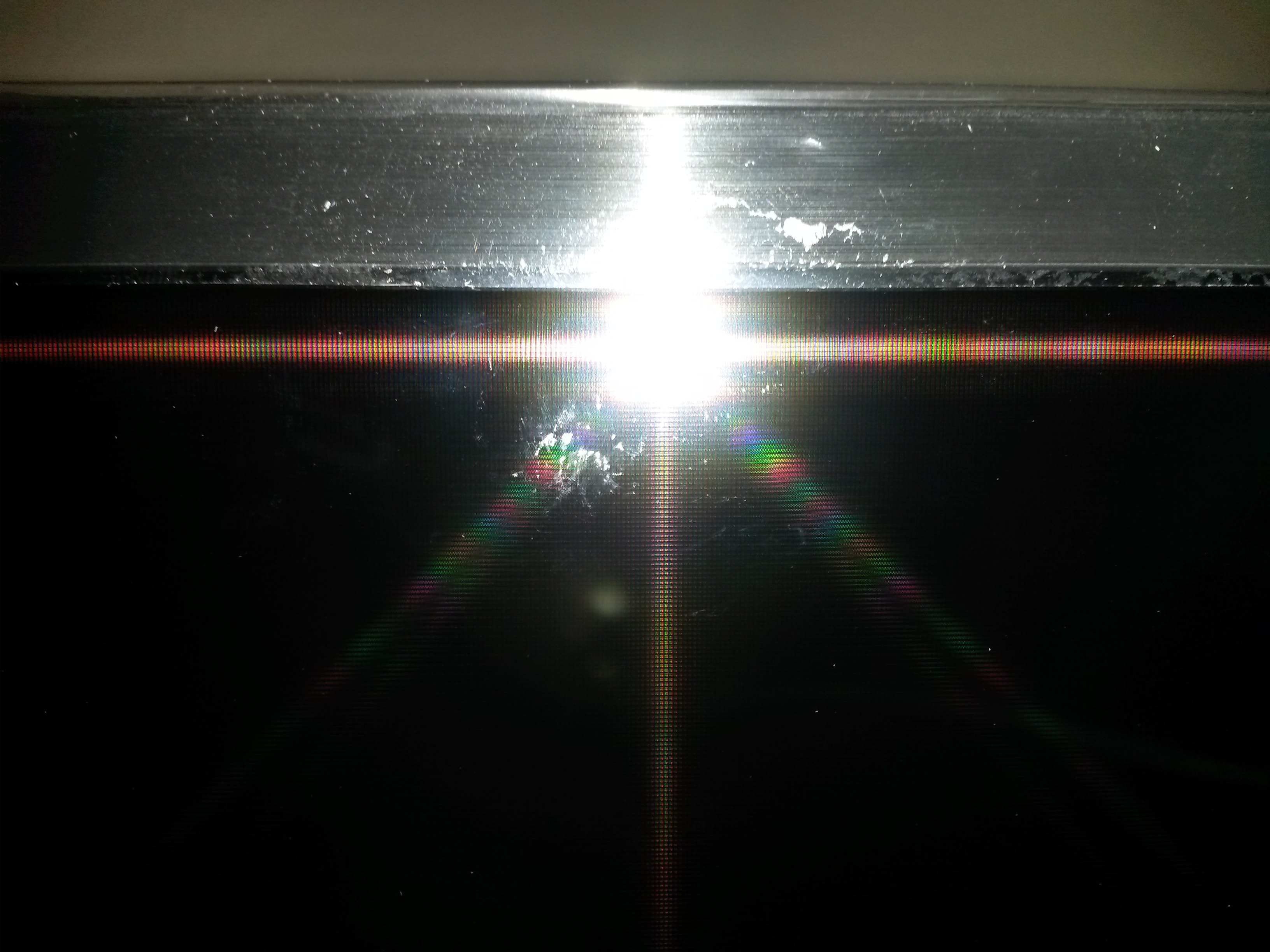 Wieso Schutzfolie? Die Flecken sind auf dem Bildschirm selber - es sei den ich bin blind und es ist eine Folie auf dem Bildschirm. Der Rahmen hat ne Folie, die werd ich die Tage auch abziehen.