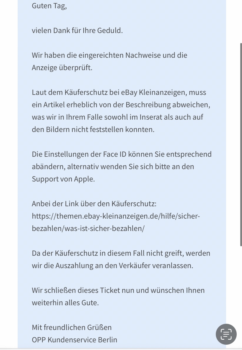 Mache ich was falsch oder verstehe ich Käuferschutz falsch?