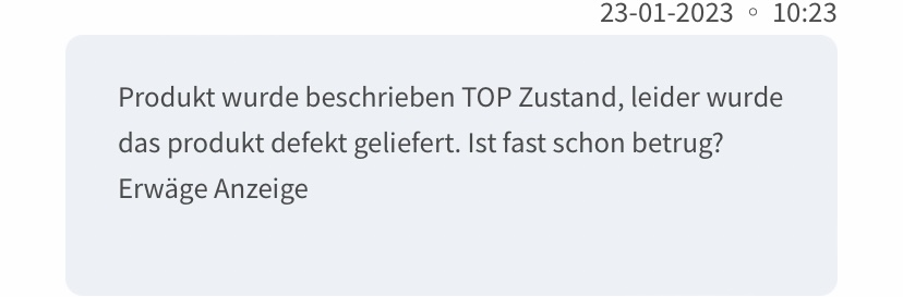 Kann es sein das bei OPP Menschen die nicht der deutschen Sprache mächtig sind das nicht verstehen das es Defekt ist und erheblich von der Beschreibung abweicht.