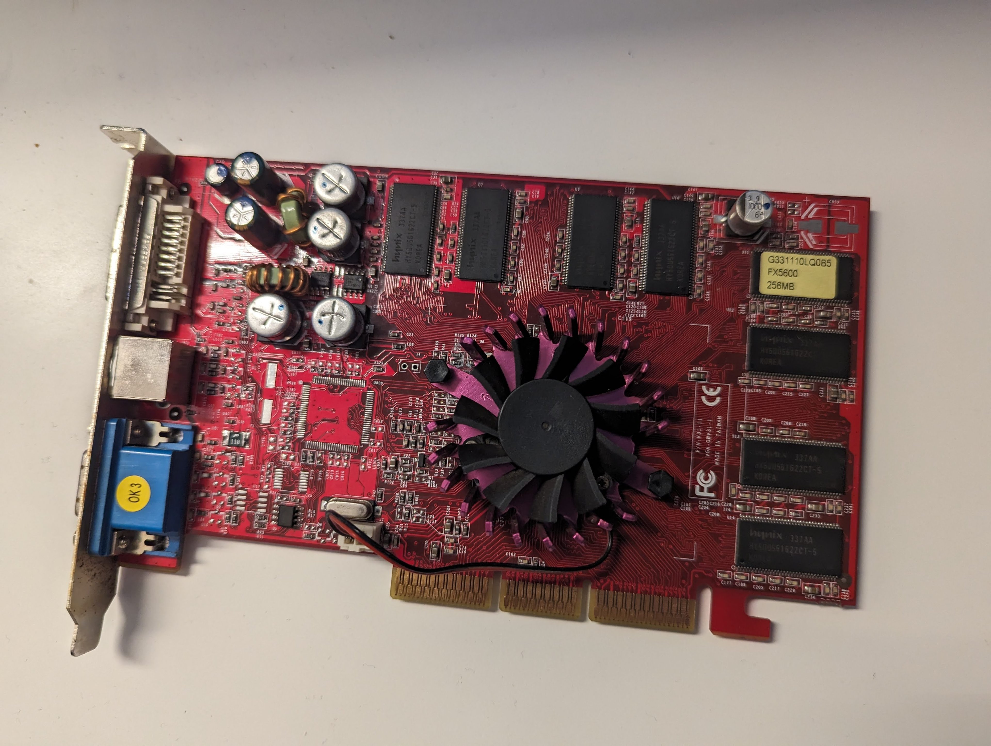 - Gainward GeForce FX 5600 (mit einem MOD Bios, Chip Takt ist bei der hier auf 300Mhz)