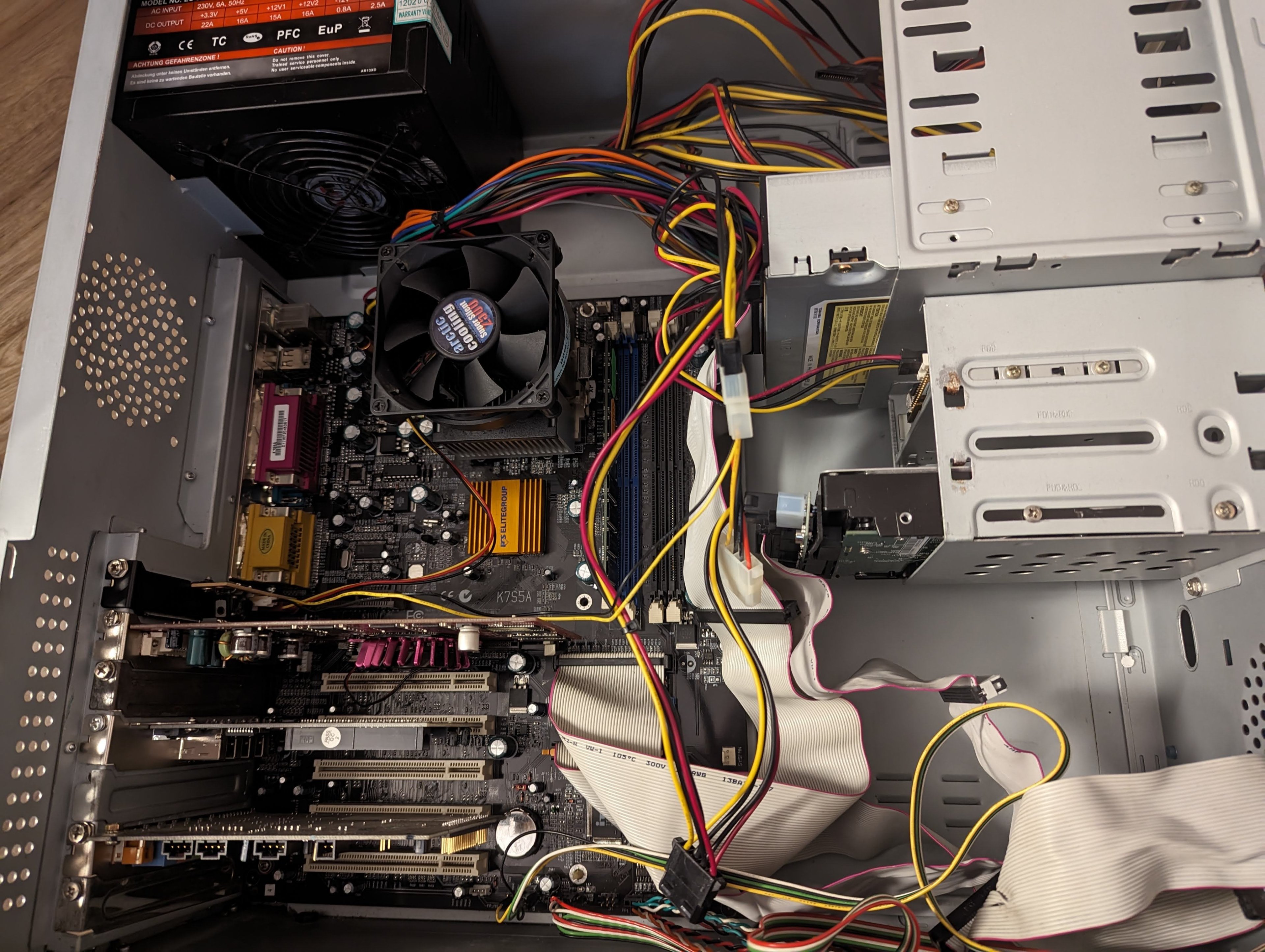 PC stand wohl teilweise in einem Schuppen, Dachboden mit offenem Fenster oder so ähnlich. Auf den Bildern war ja schon zu sehen das vorne und hinten jeweils eine Blende fehlt, dementsprechend war das Innenleben gut verstaubt und verdreckt. (Spinnen günstig abzugeben, jemand Interesse? )