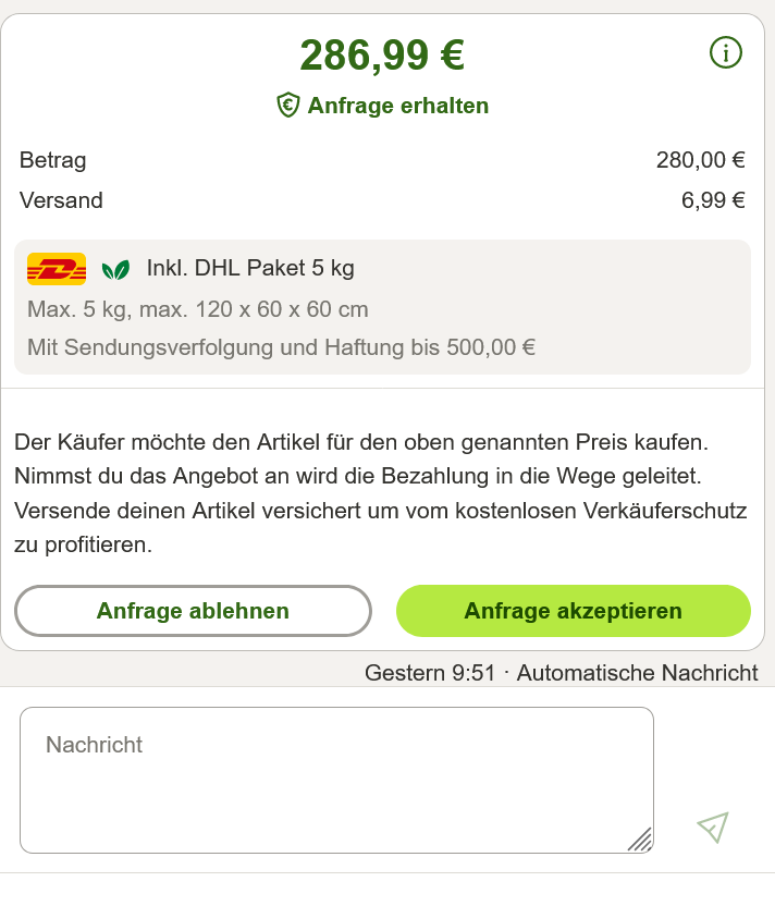 ich bekomme bei Kleinanzeigen ständig, "möchte dieses kaufen über “Direkt kaufen” doch ich hab es im Angebot extra nicht eingestellt!