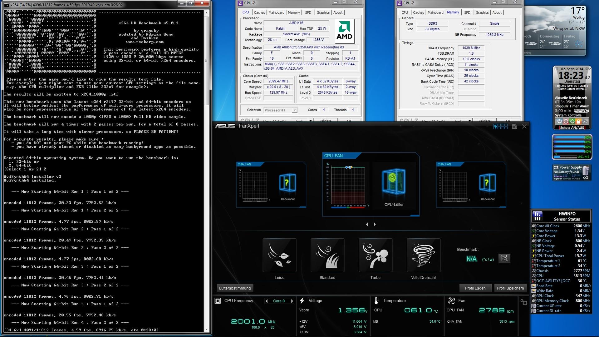 - Im Moment laufen die Gehäuselüfter noch auf Vollgas und das Gehäuse ist offen -> kein Endzustand also auch sinnfrei zu testen