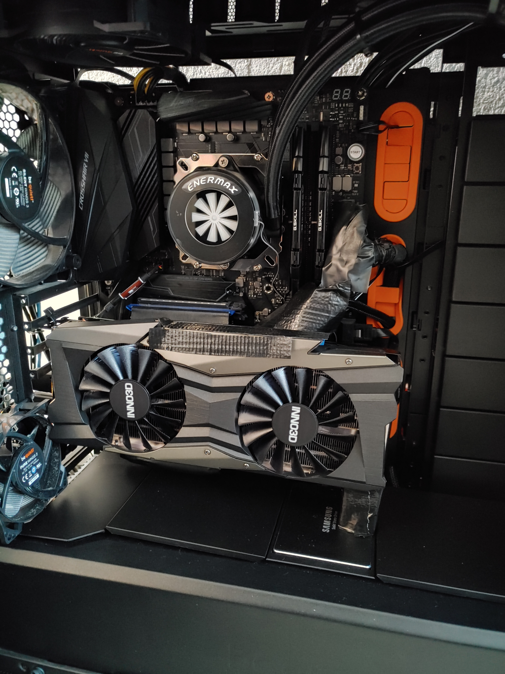 (Den mir zu grellen weissen "RTX 3080 usw" Schriftzug hab ich überklebt bis mir ewas besseres eingefallen ist, ist mir zu hell und leider nicht regelbar...)
