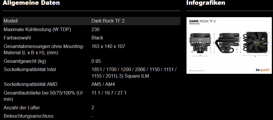 Muss ja das nehmen was der Laden zur Verfügung hat. Der Dark Rock Tf2 wär mir der liebste. Kp warum das Alternate nur für intel anbietet. Memory-pc hat nur einen kleinen 95watt Kühler oder großes/breites Gehäuse mit Towerkühler