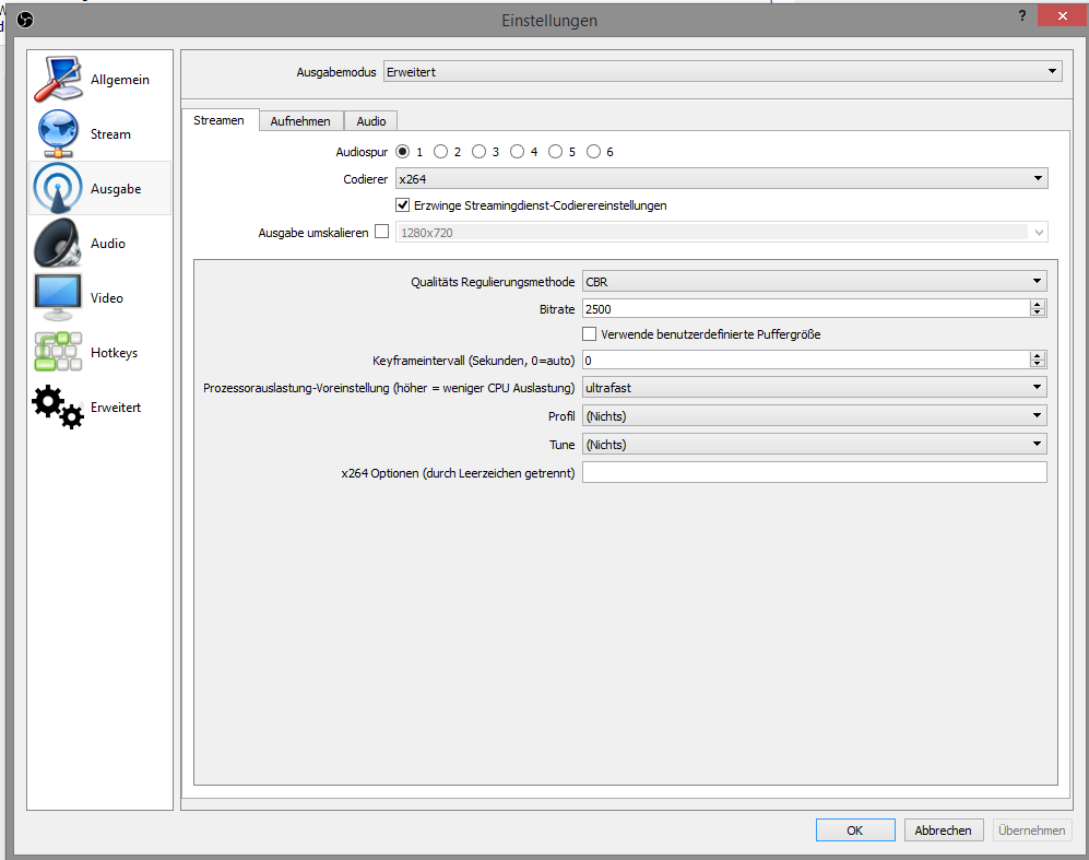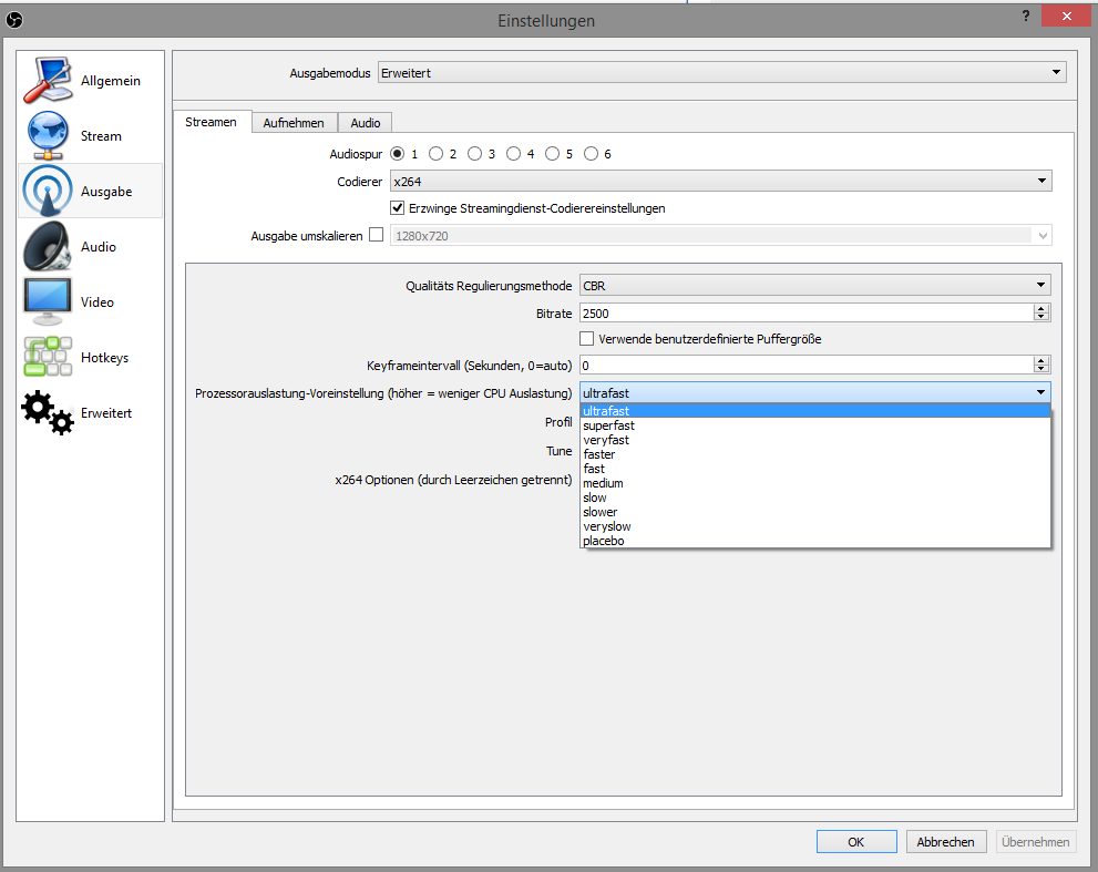 Ich Streame seit einigen Monaten über OBS in 720p.
