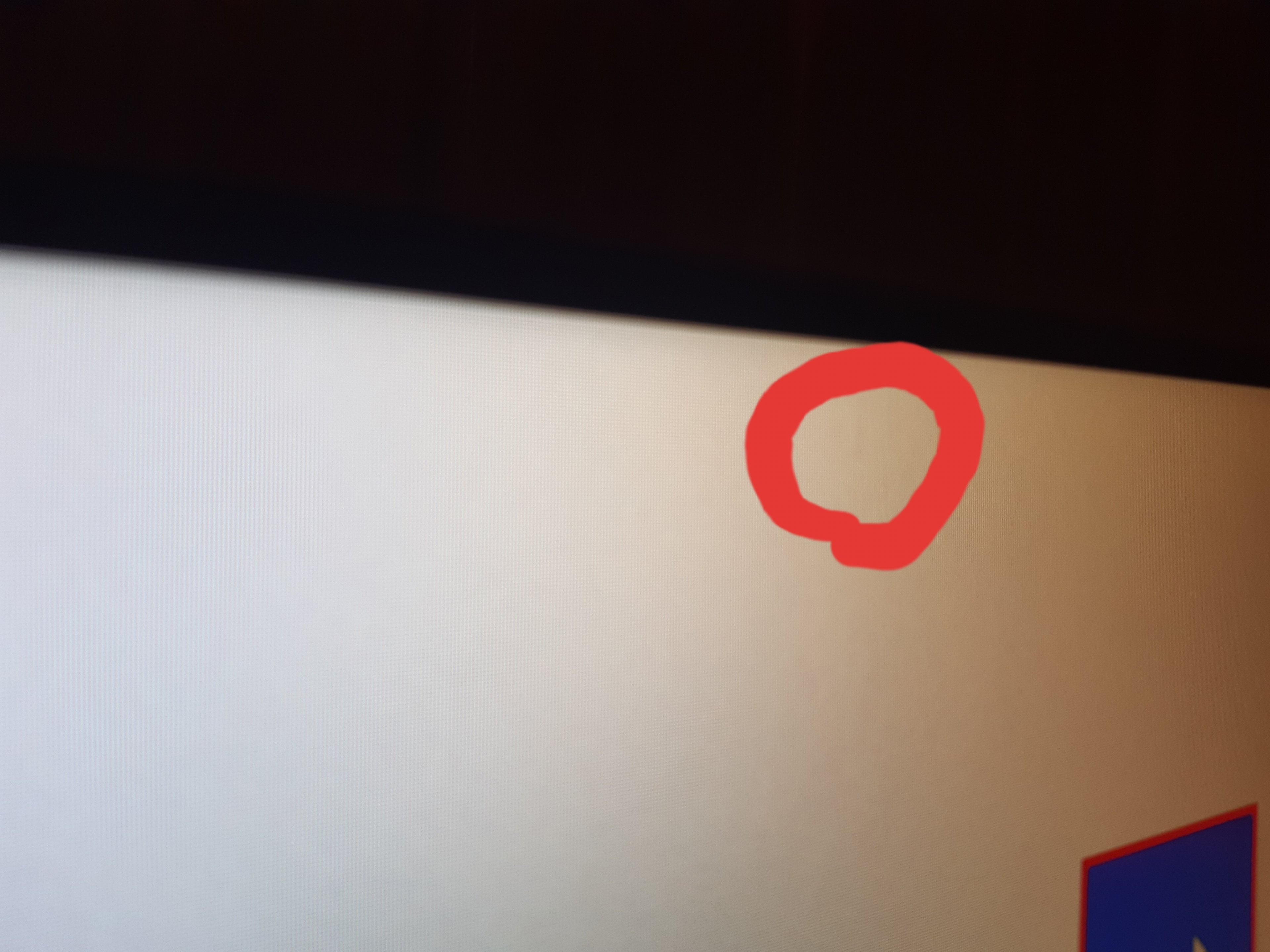 Leider ist mir vor kurzem etwas aufgefallen. Ein kleiner, sehr dünner Strich an der rechten oberen Ecke des Bildschirms. Auf den Bildern ist es recht schwer zu erkennen...