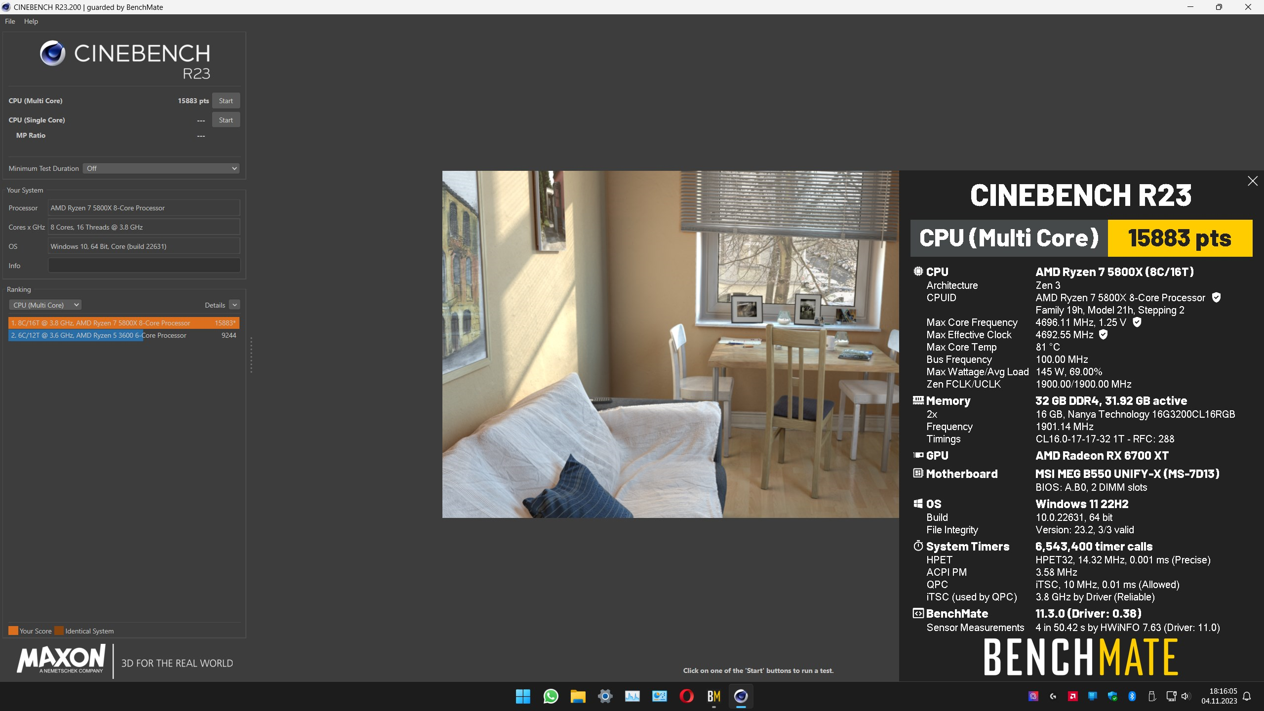 Vergleiche mit der gleichen CPU von anderen im Netz kann man mehr oder weniger vergessen weil man nicht weiß ob sie Cheating äh ich meine natürlich die Optimierung für CineBench im BIOS aktiviert haben (bei denen die vorne liegen kann man sich ziemlich sicher sein das sie es haben ), muss also warten bis es wieder kühler geworden ist und dann ohne Undervolting CineBench durchlaufen lassen für den Vergleich.^^