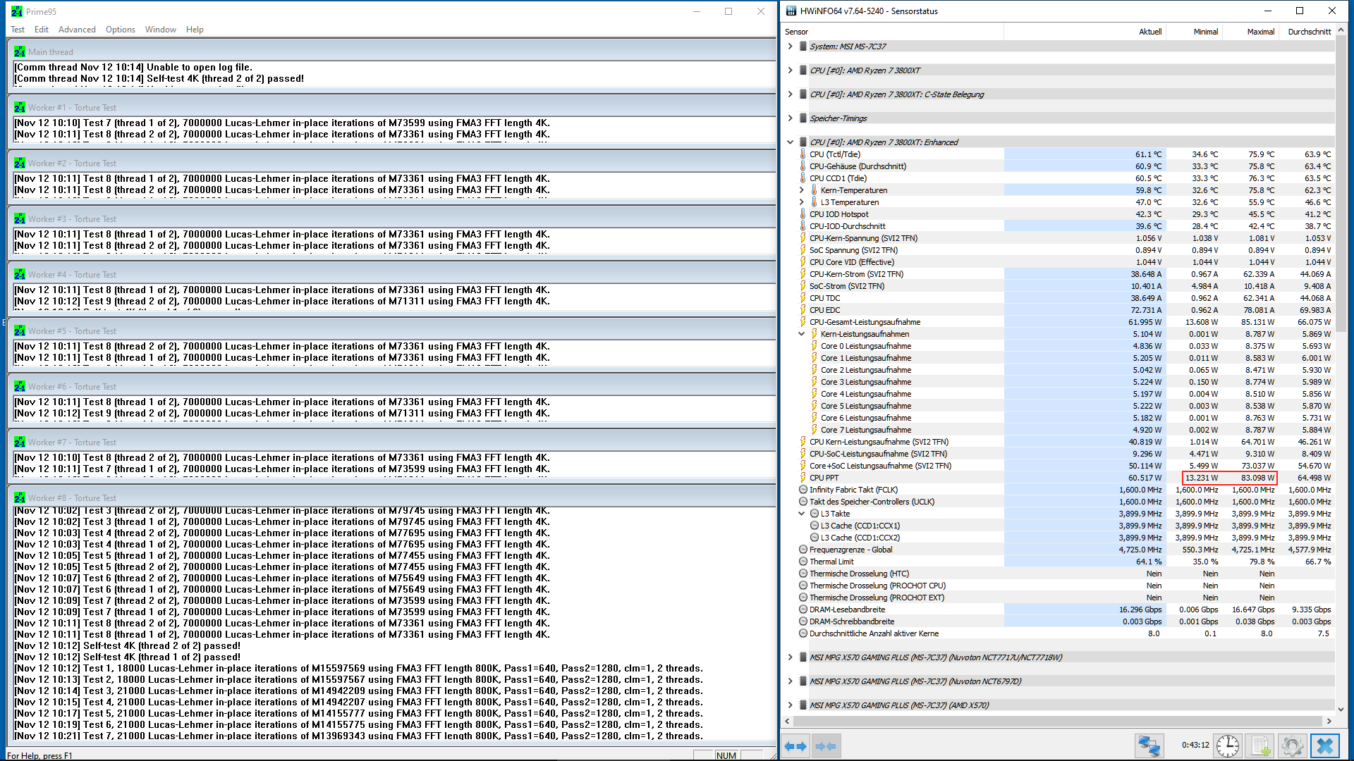 Ich hab jetzt nochmal Prime95 Stresstest laufen lassen.