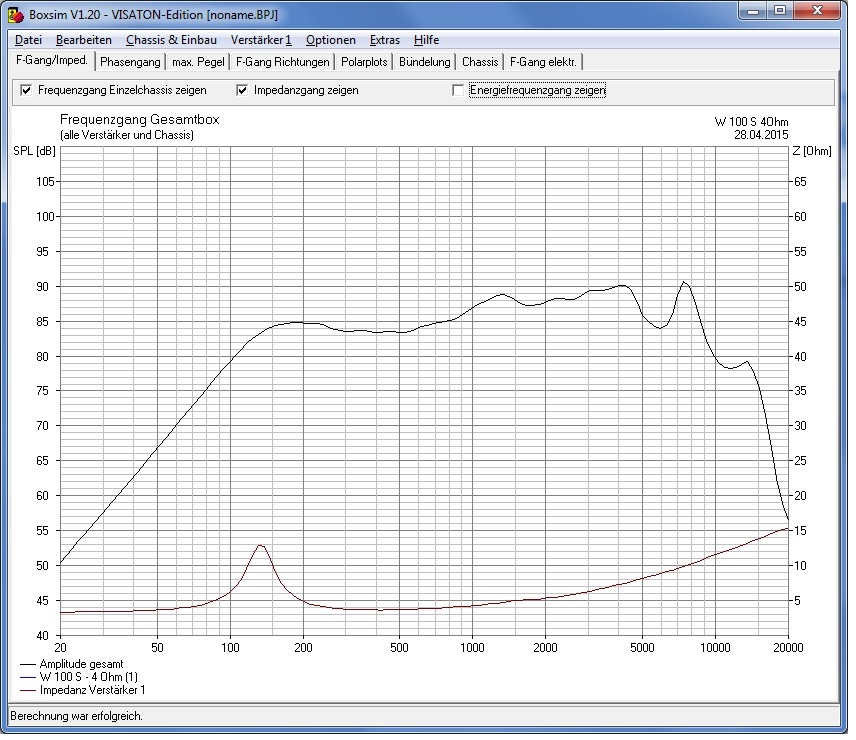 ich simuliere nicht mit Boxsim. Ich weiß nicht wie der W100S in einem solchen Volumen, gänzlich ohne Bass-EQ - sinnvoll an einen Subwoofer ankoppelbar wäre. Das da dann kein echter Bass mehr raus kommt, ist klar.
