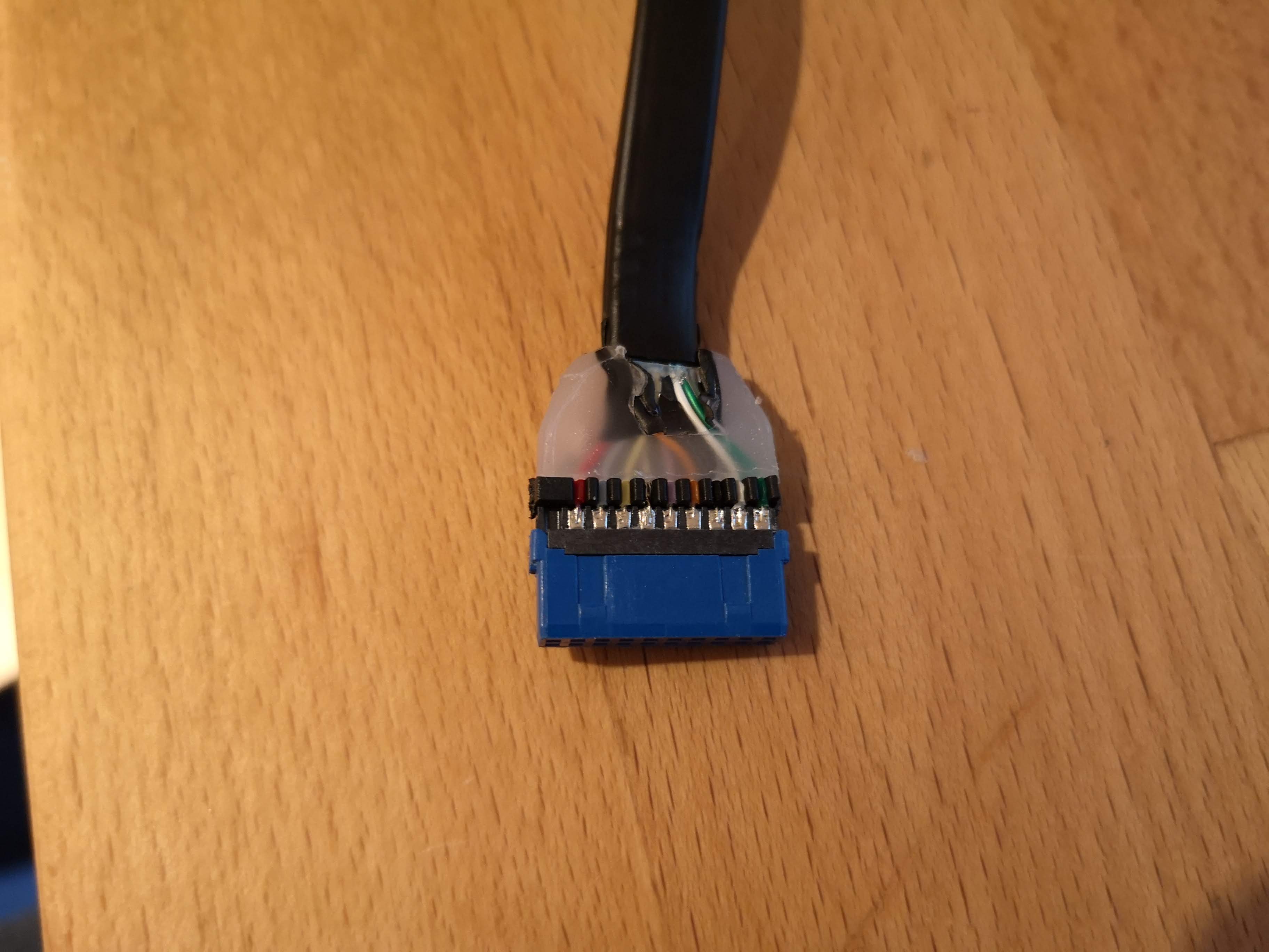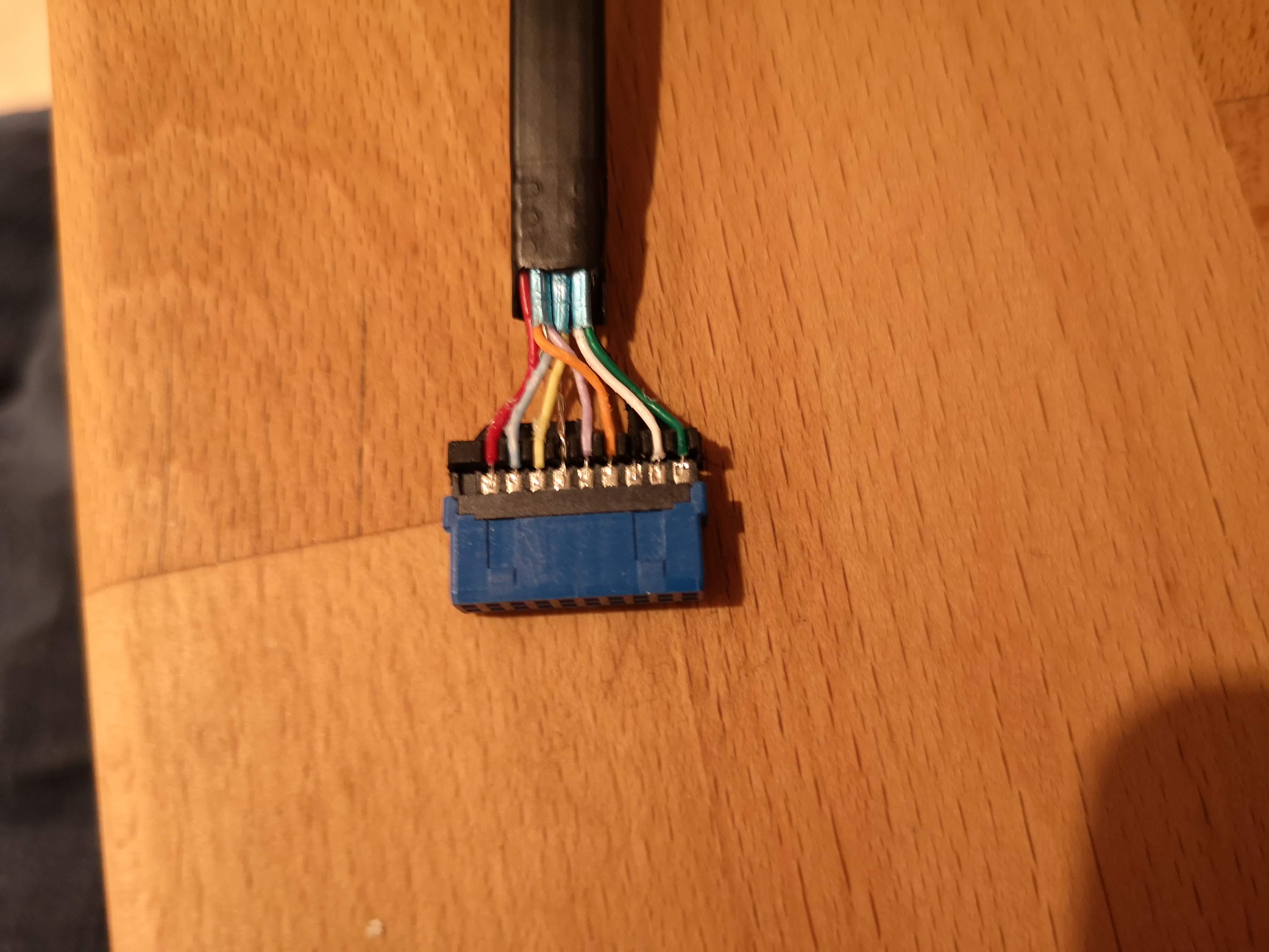 Sämtliche Kabel werden ebenfalls custom, mit dem viel zu langen USB 3-Kabel zur Front habe ich erstmal angefangen.
