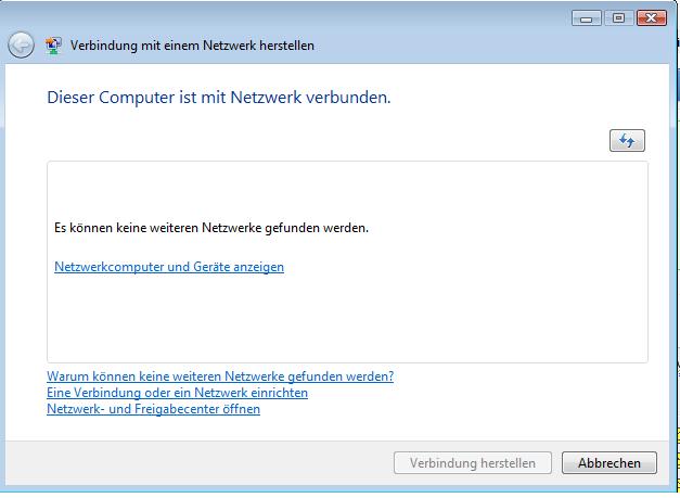Wenn ich dann unter "Warum können keine Netzwerke gefunden werden?" gehe, kommt folgende Nachricht.