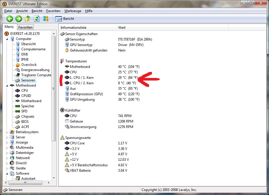 also ich habe ein kleines Problem mit meinen Temps das die nicht richtig ausgelesen werden. Dazu habe ich mal das Bild beigefügt damit ihr seht ich habe schon mit allen erdenklichen Programmen versucht es auszulesen (auch everest obwohls nicht drauf ist, MSI utilities gehen leider unter Vista 64 nicht).