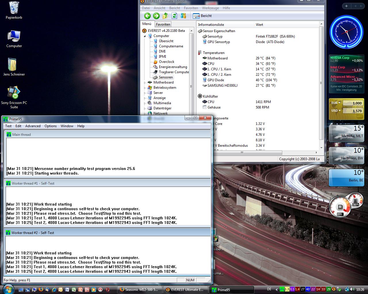 Kann des sein? Wir haben hier Winter und keine Heizungen, die Wohnung ist in den Felsen reingebaut, so das es immer etwas Kühler ist wie aussen (grade 10-15° indoor). Der PC steht aber auf einem dünnen Teppich boden. Ich habe nen neuen Noctua mit 2x P12 Lüftern. WLP hab ich mega exacto genau gemacht so wie es sein muss (bei dem Anpressdrcuk den der Kühler hat geht das auch nicht anders :mrgreen: )