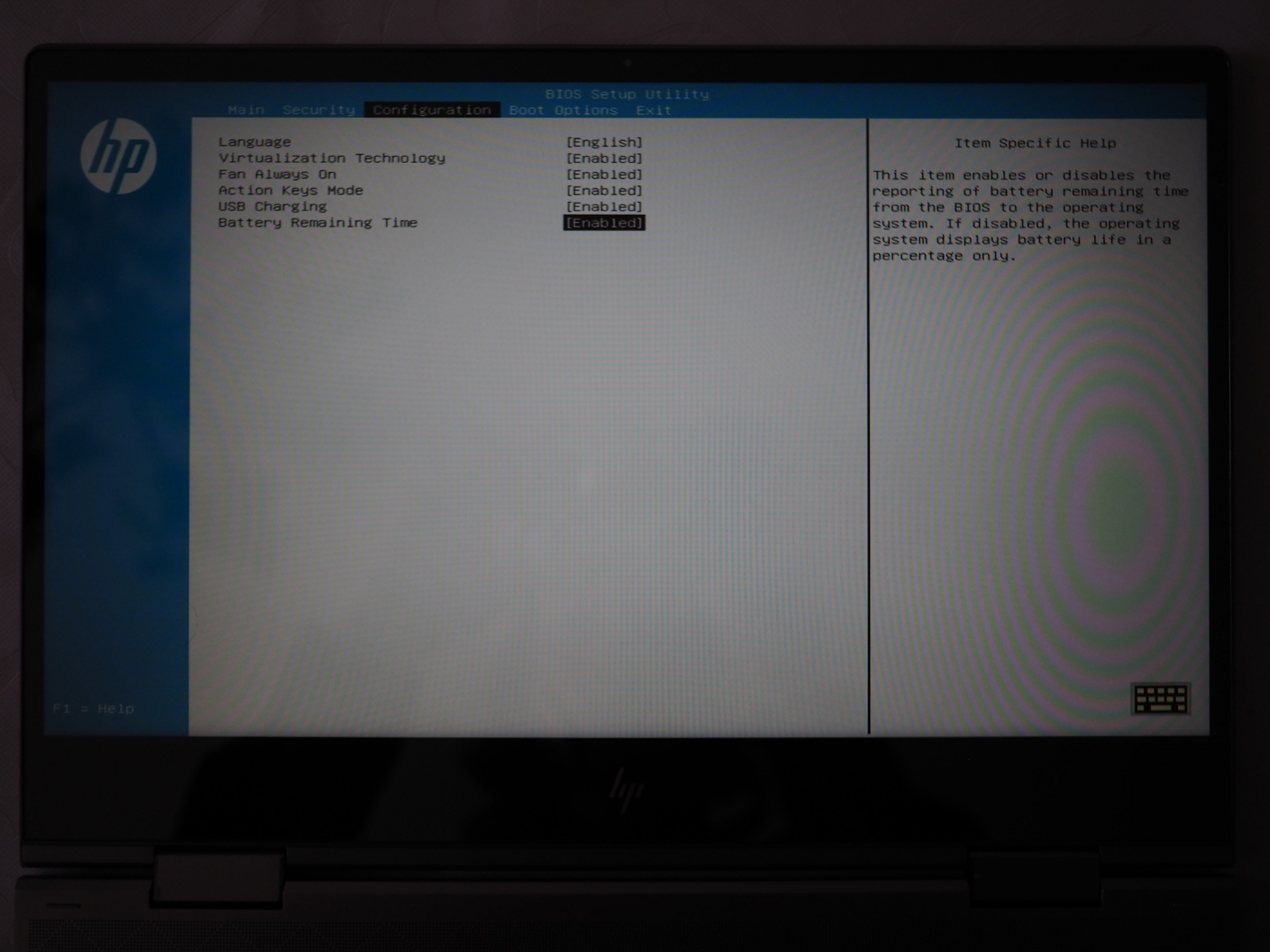 Zwei weitere, kleine Punkte betreffen das Notebook selbst. Da hätten wir z.B. das doch sehr beschränkte BIOS (Details siehe Bilder). Hier kann man so gut wie nichts einstellen und ist quasi darauf angewiesen, dass das Notebook die Hardware ordnungsgemäß erkennt. Wünschenswert wäre hier, wenn es neben entsprechende Option für die Hardware (RAM Takt ec.) noch ein paar Einstellungen zwecks Leistung bzw. Energiesparen gebe. Zweiter Punkt betrifft das Display selbst. Hier würde ich mir wünschen, dass das Bild das Display besser ausfüllt. So ist unten ein "großes" HP Logo was das Display in der Größe (in der Höhe) um ca. 3cm kleiner macht als es eigentlich möglich wäre.