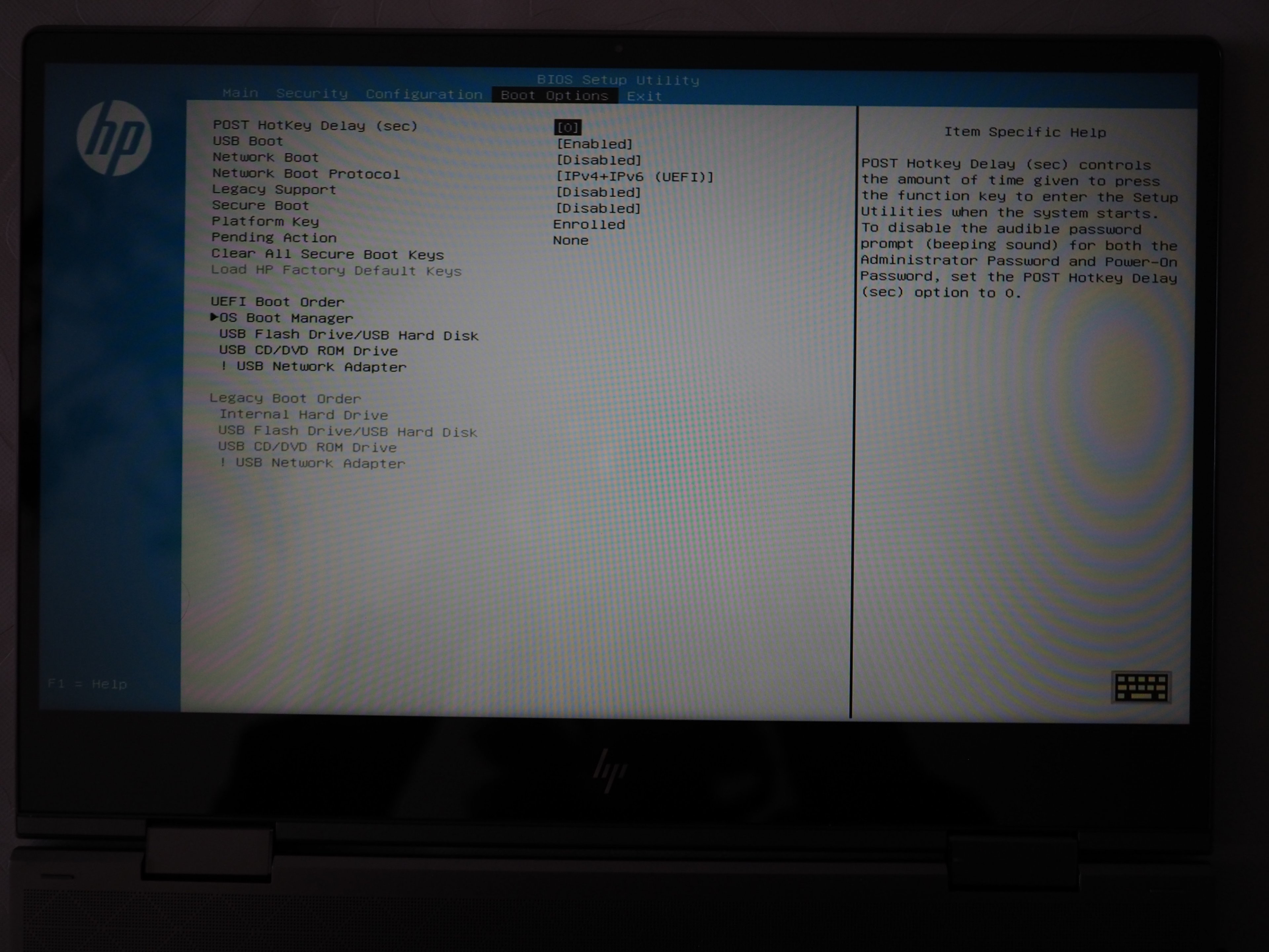 Also ich habe nur kurz den Laptop im Original Zustand gestartet um quasi die Windows Lizenz mit meinem Microsoft Konto zu verknüpfen, daher kann ich über das Original System samt HP Programmen wenig bis nichts erzählen. Danach wurden die oben genannten Bauteile getauscht und Windows 10 in der aktuellsten Version via USB 3.0 Stick als „Clean Install“ neu aufgesetzt. Dies ging relativ zügig von statten. Hatte jedoch anfangs Probleme mit finden des USB Sticks beim Booten. Aus diesem Grund habe ich u.a. Secure Boot deaktiviert. Der Legacy Modus sollte jedoch deaktiviert bleiben. Hier einfach darauf achten, dass der USB Stick richtig formatiert, in meinem Fall NTFS + GPT, ist. Andere Konfigurationen haben Probleme gemacht. Wie z.B. das Media Creation Tool von Microsoft. Irgendwie bekomme ich es da nie hin einen USB Stick als Installierbares Medium zu erstellen. Rufus hingegen verrichtet immer brav seinen Dienst.