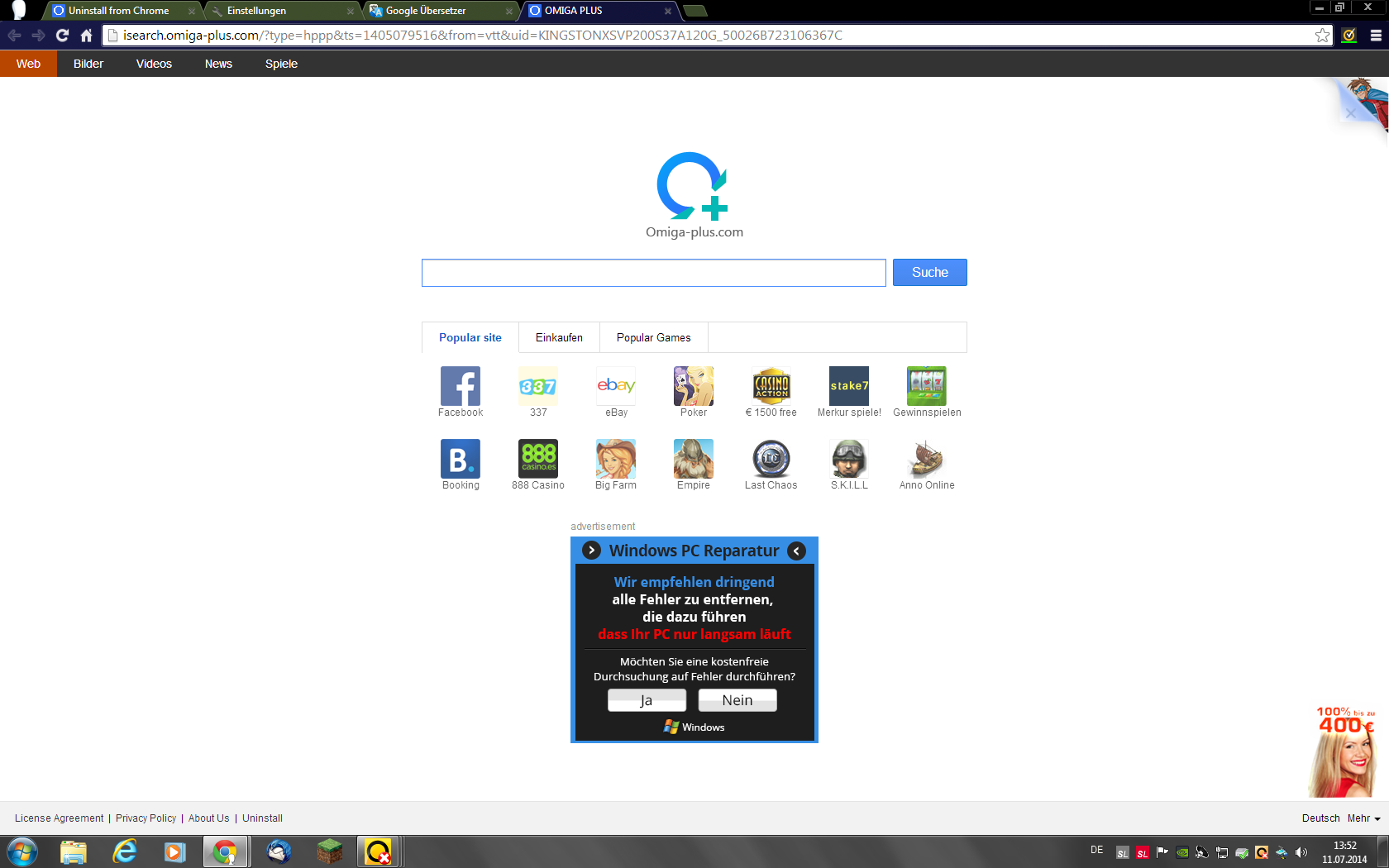Ich habe folgendes Problem, sobald ich eine Link-Verknüpfung auf dem Desktop anklicke, öffnet sich nicht der Link, sondern eine sogenannte Seite OMIGA PLUS.
