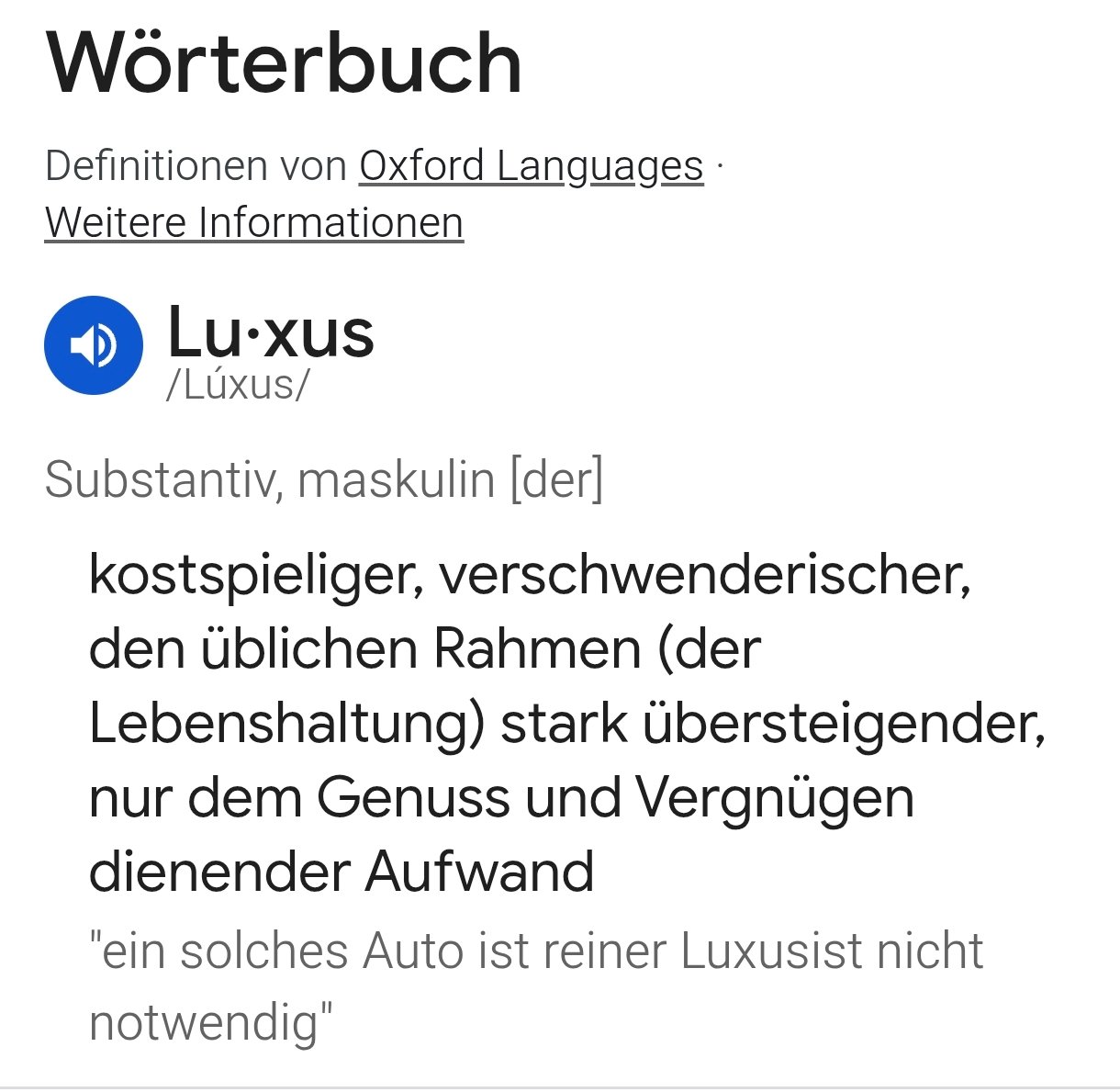 Nee, das hat was damit zu tun, dass deine Rechthaberei nur noch von deiner Überzeugung übertroffen wird, natürlich als einziger die Objektivität für sich gepachtet zu haben, um anderen vorzuschreiben, wie sie gefälligst den Begriff Luxus zu verwenden haben.