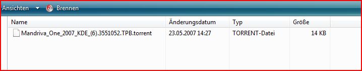 eben habe ich eine kleinere KNOPPIX datei mit der endung iso.torrent versucht mit nero zu brennen. brennen ging, aber die cd kann nicht gelesen werden. im moment lade ich die dvd von knoppix v5.1.1 herunter auch iso torrent. wenn ich es richtig verstanden habe bedeutet das torrent doch nur was für schnellen download. ist beim brennen denn was besonderes zu beachten?
