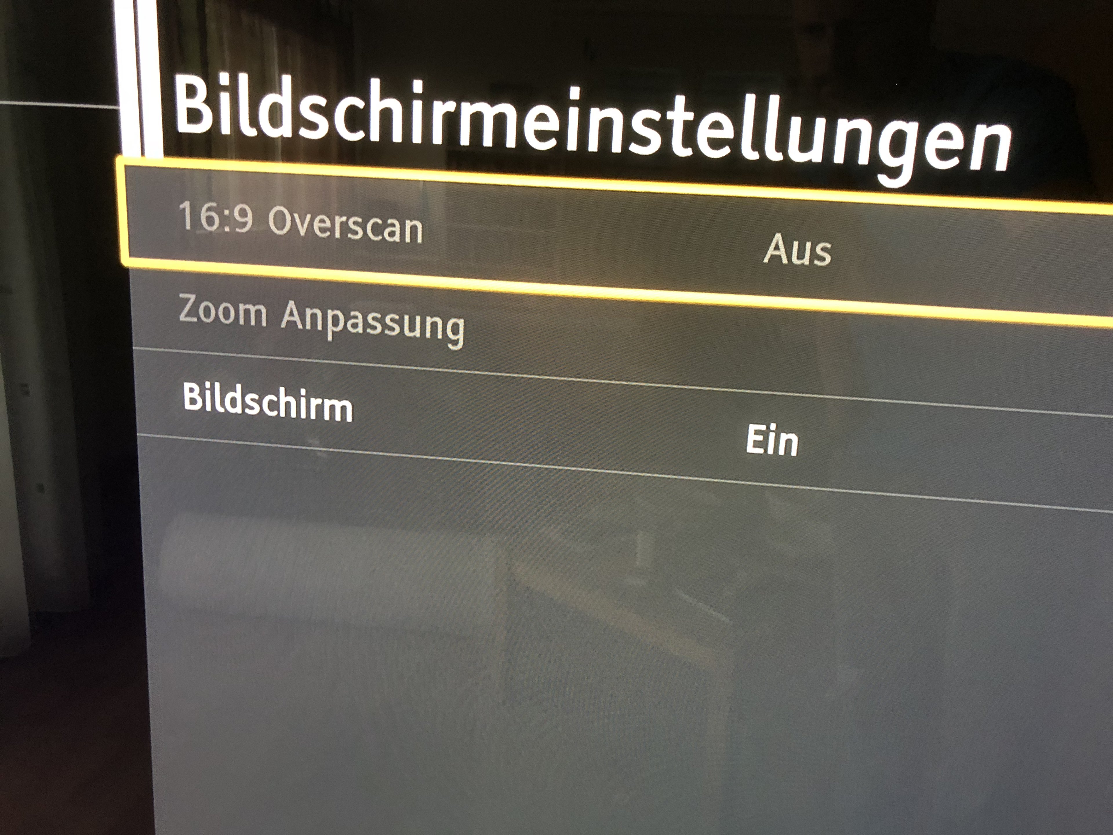 Alle anderen Menüs etc. werden in der richtigen Grösse dargestellt. Dieses konnte ich unter dem Eintrag "Video kalibrieren" einstellen.