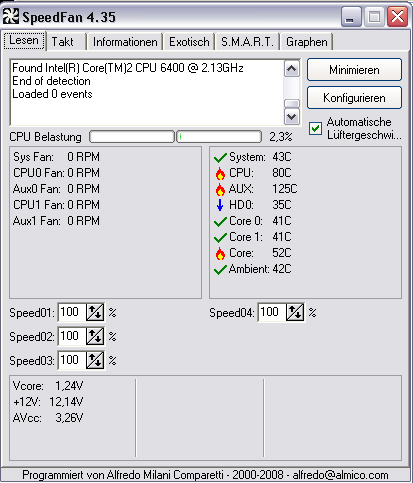 Kann es sein das Core1 und 2 bei ca. 40 Grad sind und CPU auf 80 steht ?