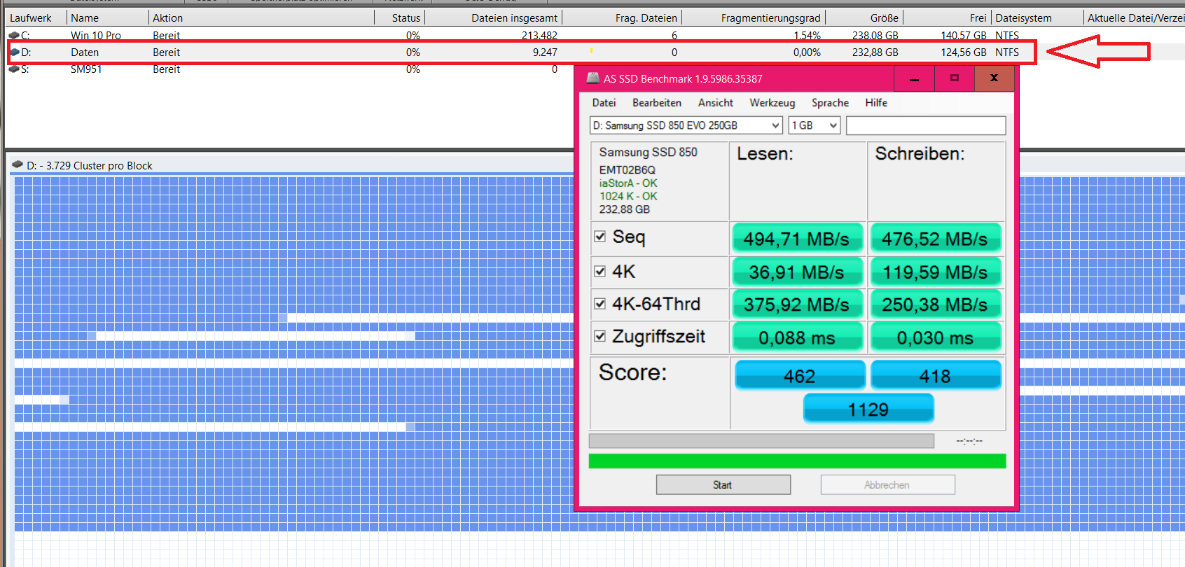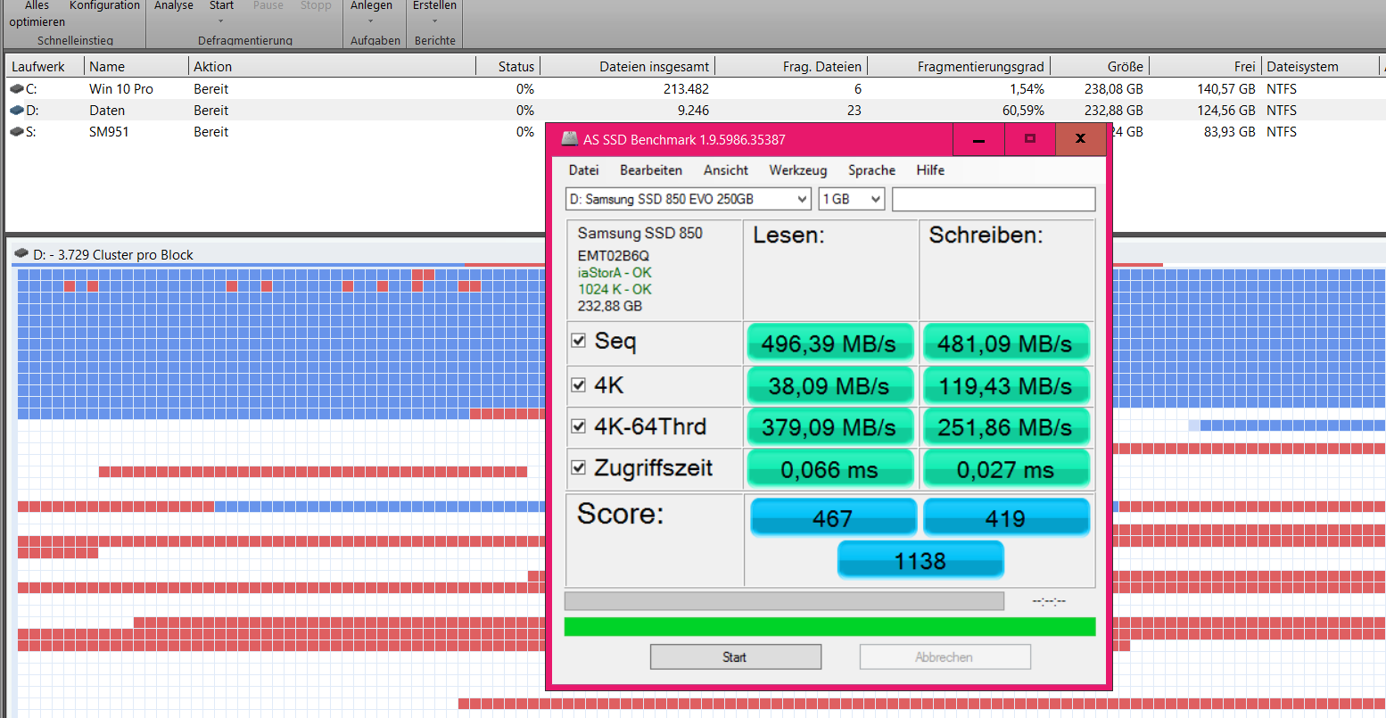 Ein Test zum Thema Fragmentierung bei SSD und ob das Einfluss auf die Leistung hat. Testkandidat ist eine 250 GB Samsung 850 EVO: