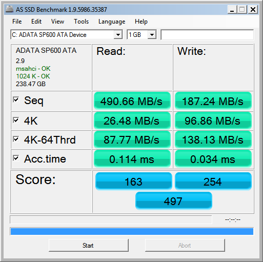Das ist die Standarteinstellung von AS SSD Benchmark und die wurde mit Absicht nicht verändert, so lassen sich Ergebnisse viel leichter vergleichen.