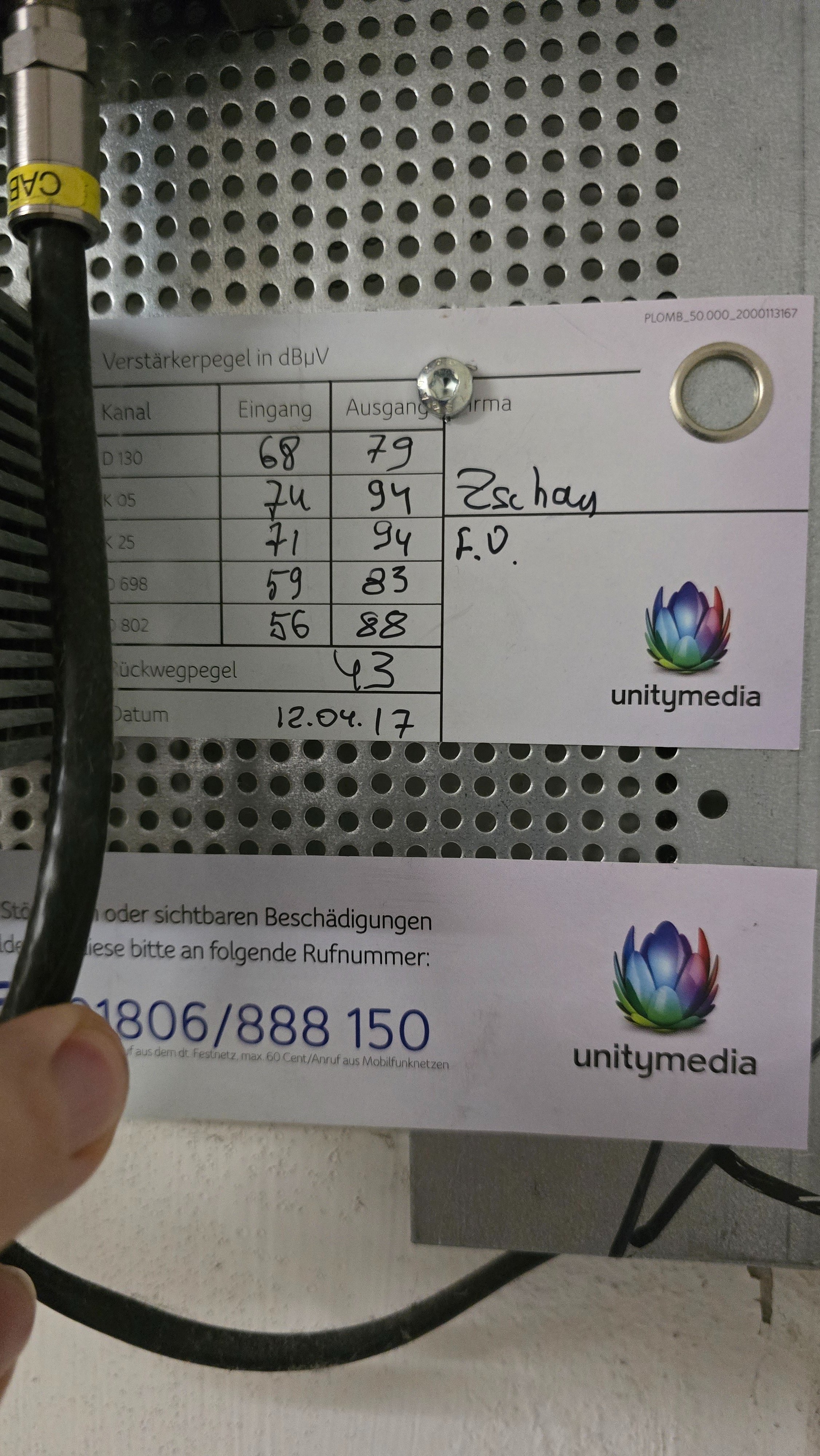 Kann mehrere Gründe haben. Eventuell ist die Anlage nicht gut eingepegelt oder das Teil was am Kabel "Baum" eingeschraubt ist, ist eine Rückwegsperre. Was steht da drauf? Ich seh das es von technetix ist, aber die Produktbezeichnung ist für mich auf der falschen Seite.