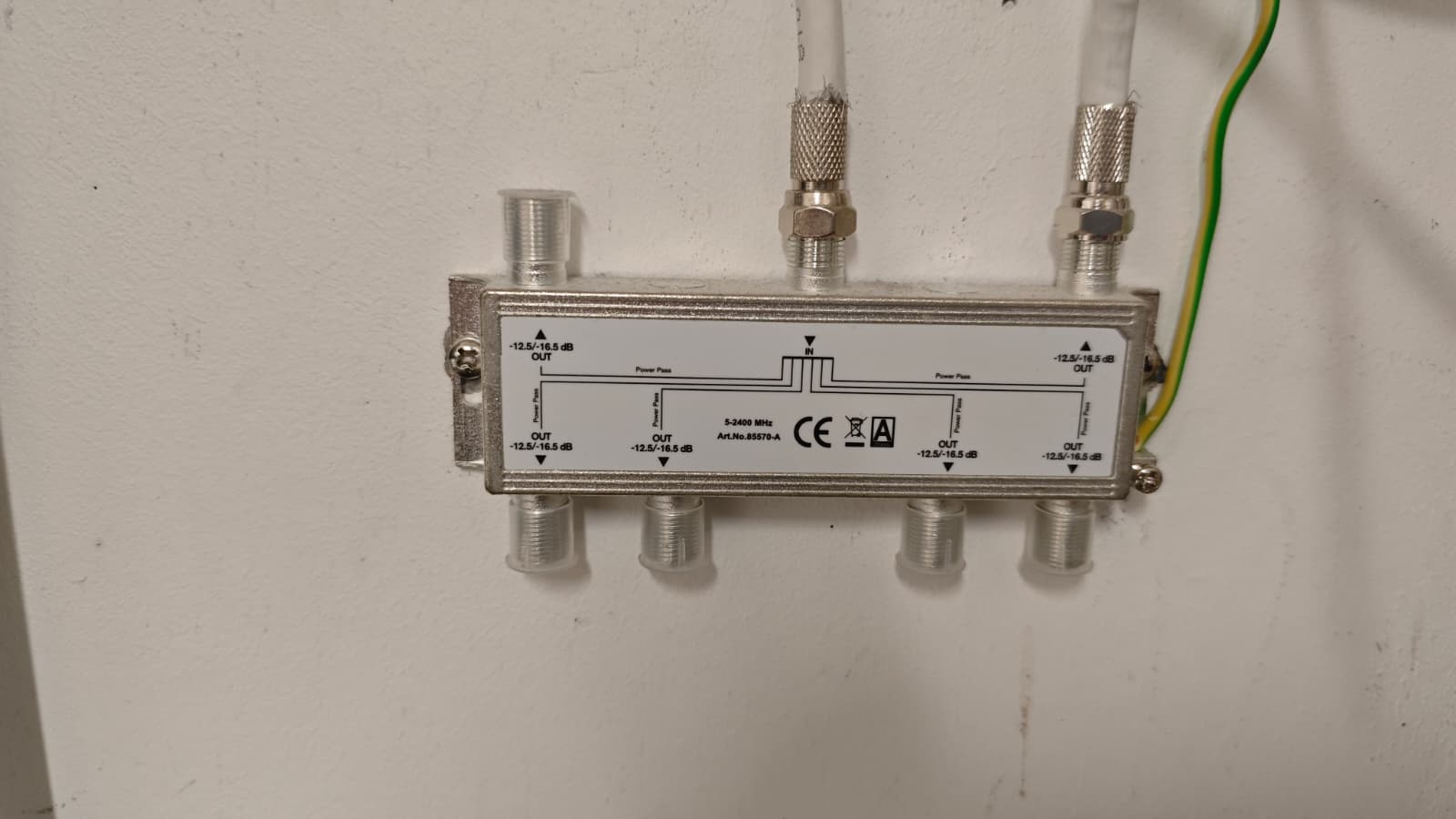 Hausanschluss von Vodafone im Keller, läuft durch einen Astro HV431 Verstärker. Von hier geht ein Kabel an meinen Hautsplitter dieser. Vor dem Astro habe ich noch diesen Poe Filter verbaut (Kann das ein Problem sein, dass er vor dem Verstärker hängt? Habe gelesen die meisten haben ihn zwischen Verstärker und Splitter).