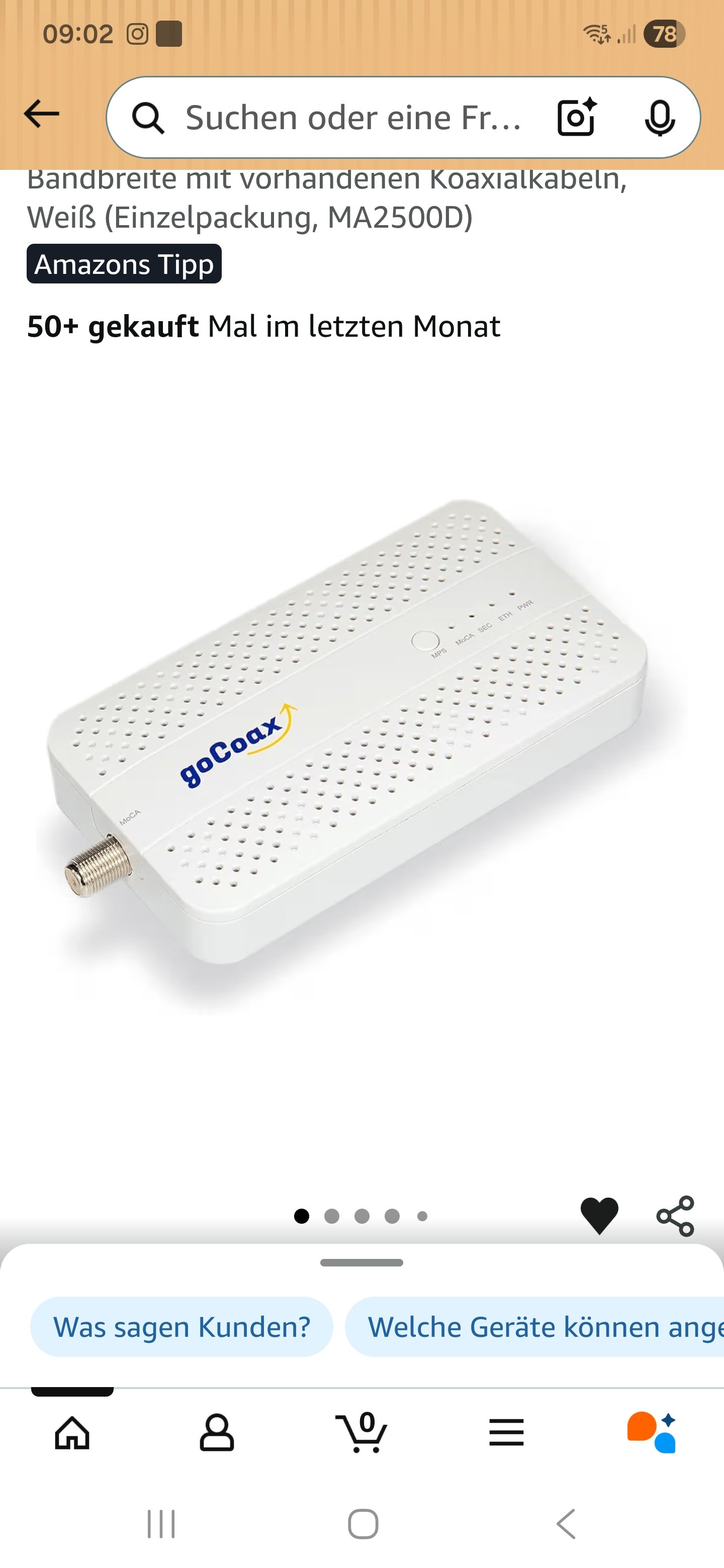 Auf Amazon findet man unter dem Stichwort MoCA 2.5 noch weit mehr Geräte, z.B. von Translite oder Luster, wobei ich bei manchen Geräten denke, dass die in der selben Fabrik vom Band fallen. Wer des englischen mächtig ist, bekommt bei goCoax binnen 2-3 Tagen per Mail eine, in meinem Fall, hilfreiche Auskunft.