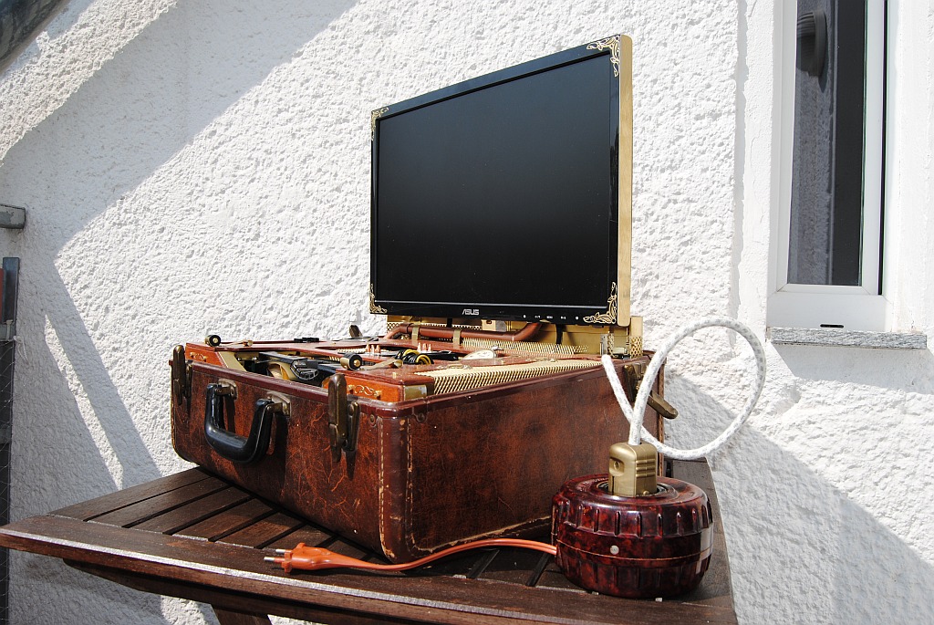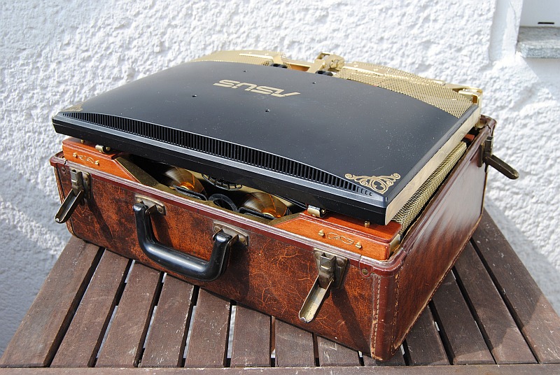 Wieder einmal mußte die Winterzeit sinnvoll überbrückt werden u nach dem Kauf einens tollen alten Samsonite-Koffers war klar, mein bestehender Koffer-Pc zieht um.