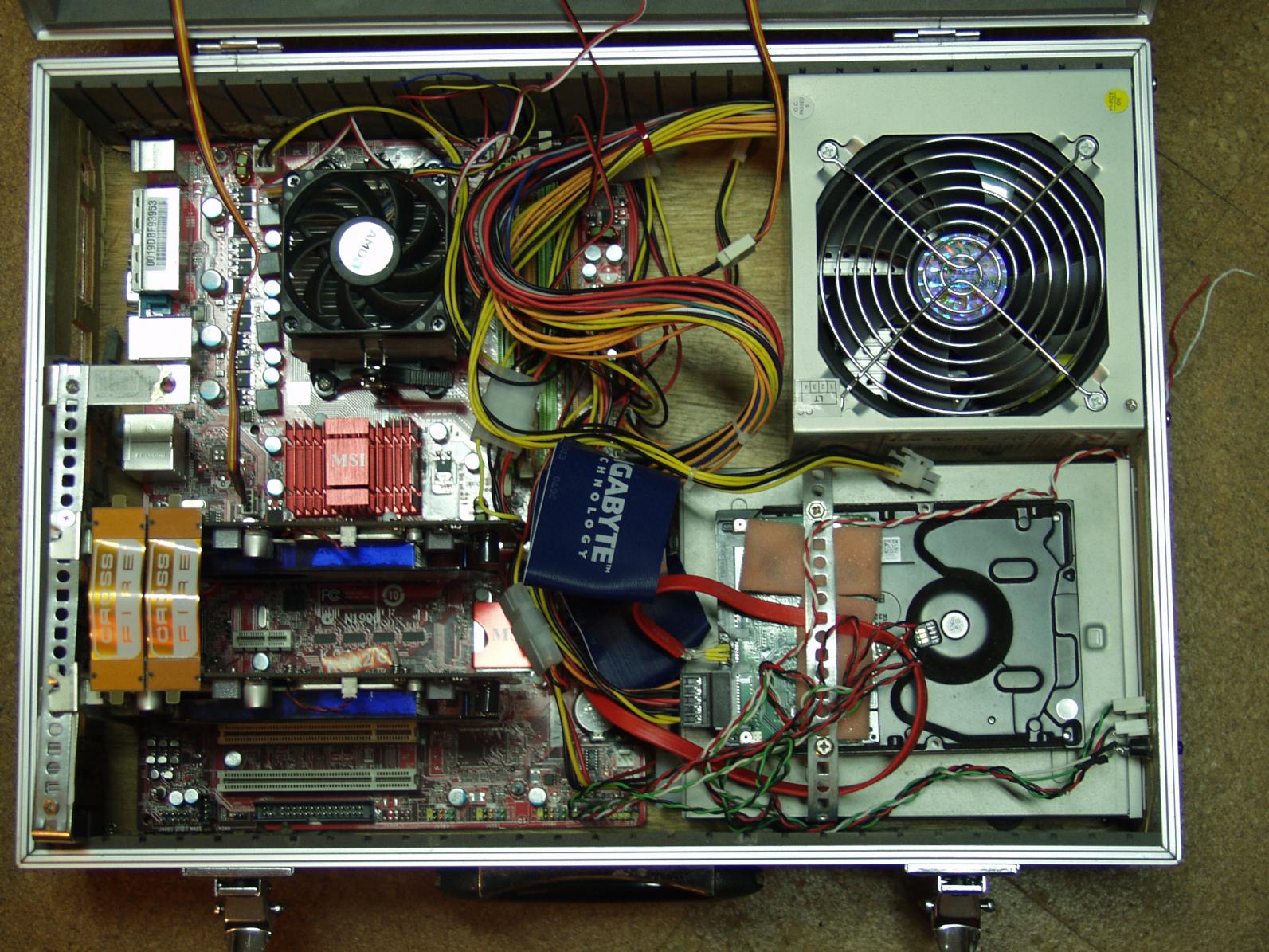 Ich habe mir am Anfang dieses Jahres aufs unseren Restbeständen aus Hardware einen PC in einen Baumarktkoffer hineingebastelt. Dies sorgte auf den verschiedenen LAN-Partys nactürlich für große Augen und brachte mir viel Anerkennung in Hobbybastlerkreisen ein.