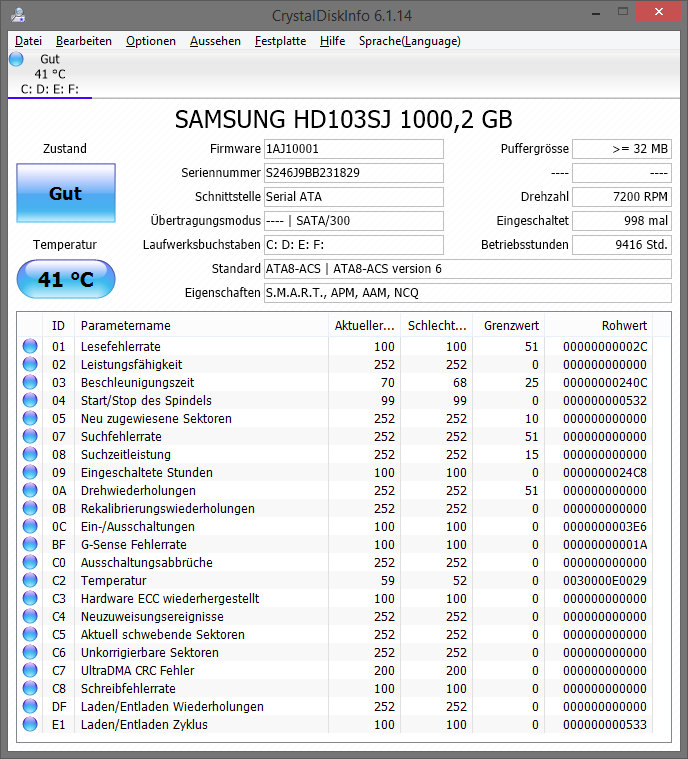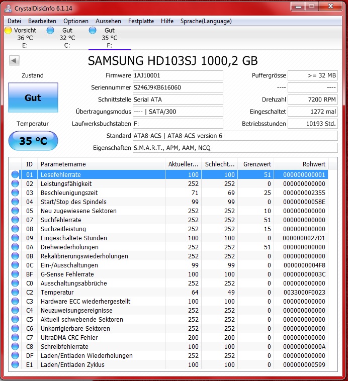 Kann es sein, das sie bald den Geist aufgibt? Es ist eine Samsung HD103SJ mit der Größe von 1 TB.