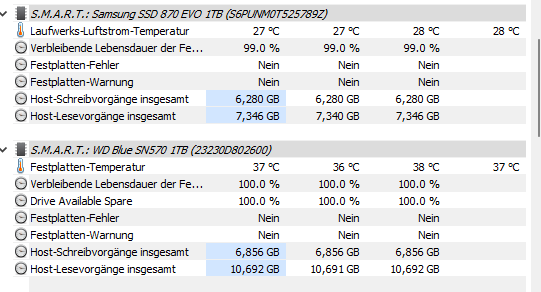 -Festplatten:1 Tb WD Blue Sn570 SSd/1 TB Samsung 870 evo Sata ssd
