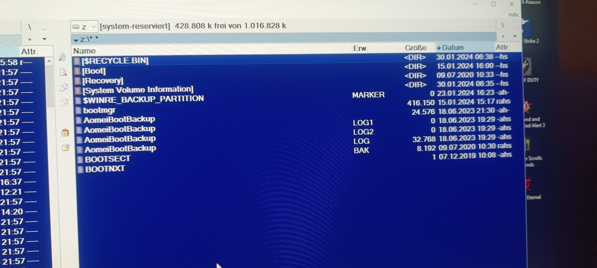 Aomei ist zwar installiert aber nicht benutzt die letzten Monate.