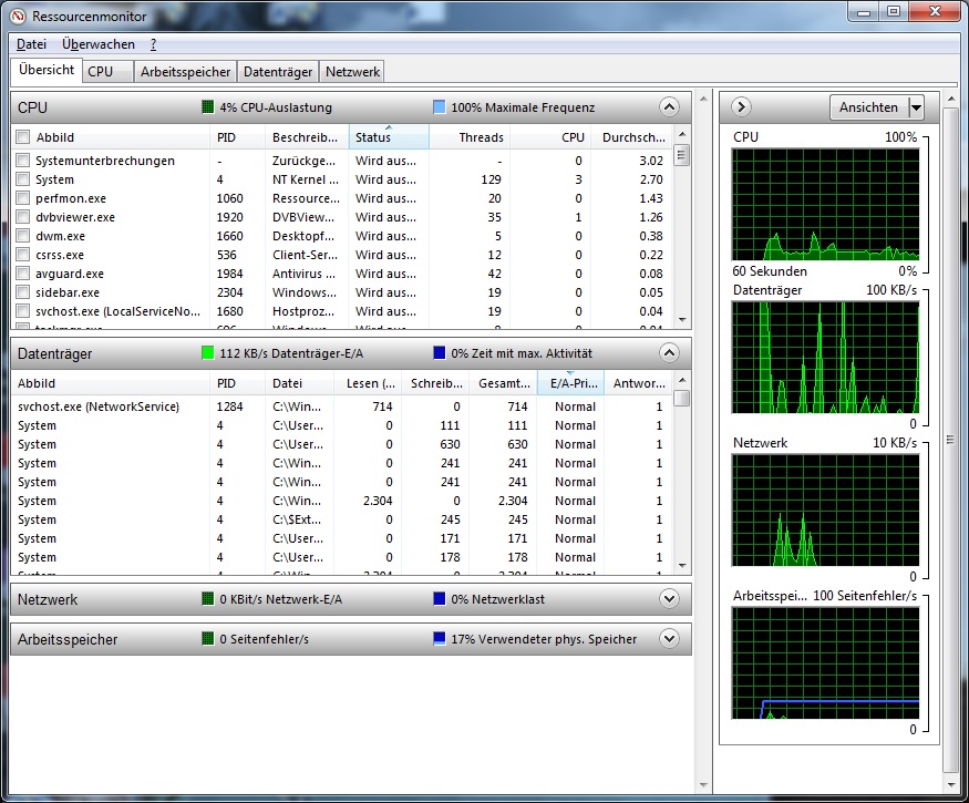 Hier noch ein paar Einzelheiten im Anhang wie: GPU, Prozesse, Leistungsangaben usw. während des Fehlers beim TV schauen auf dem PC:
