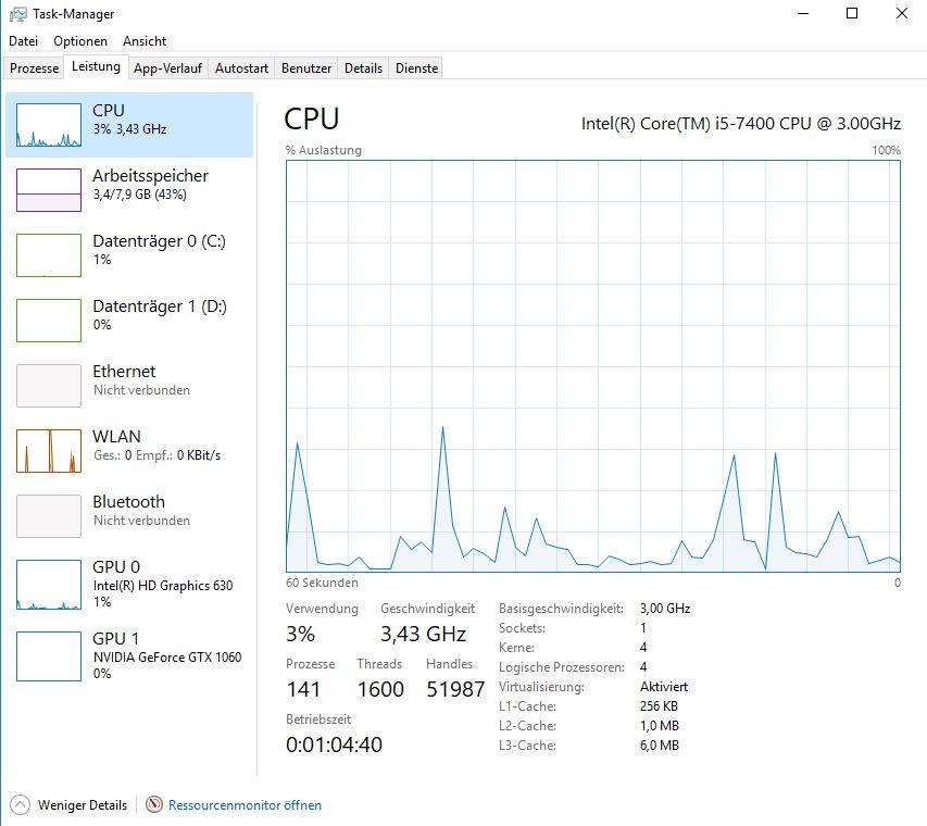 CPU: Intel i5 7400 (4x 3,0GHz, Turbo 3,5)