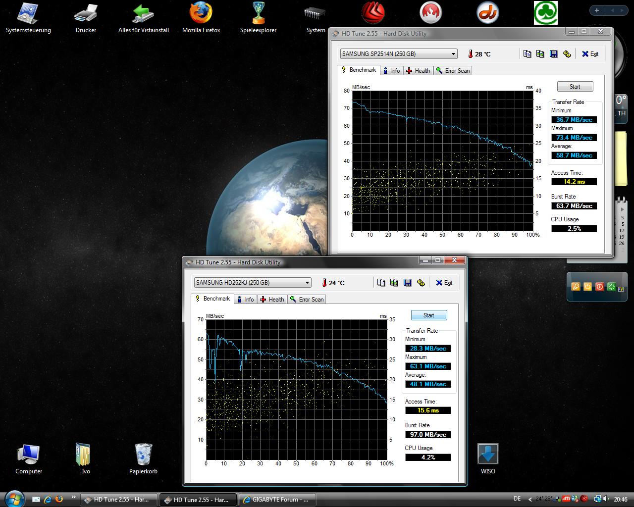 Also dass der benchmark der SATA platte nicht so gut aussieht liegt wohl unter andere eben daran, dass es die systemplatte ist. Daher gabs da am anfang paar einbrüche.