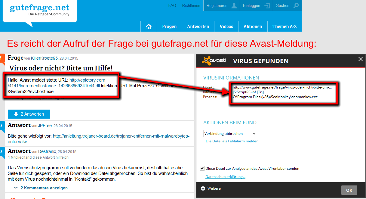 Nichtmal nach 10 sekunden wo der Pc läuft, meldet avast! diesen Bericht :