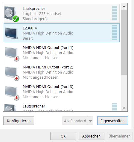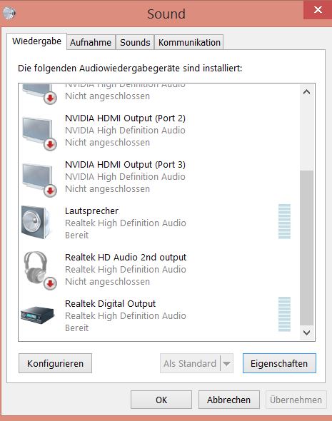 Hier meine Audio Gerät die angezeigt werden: